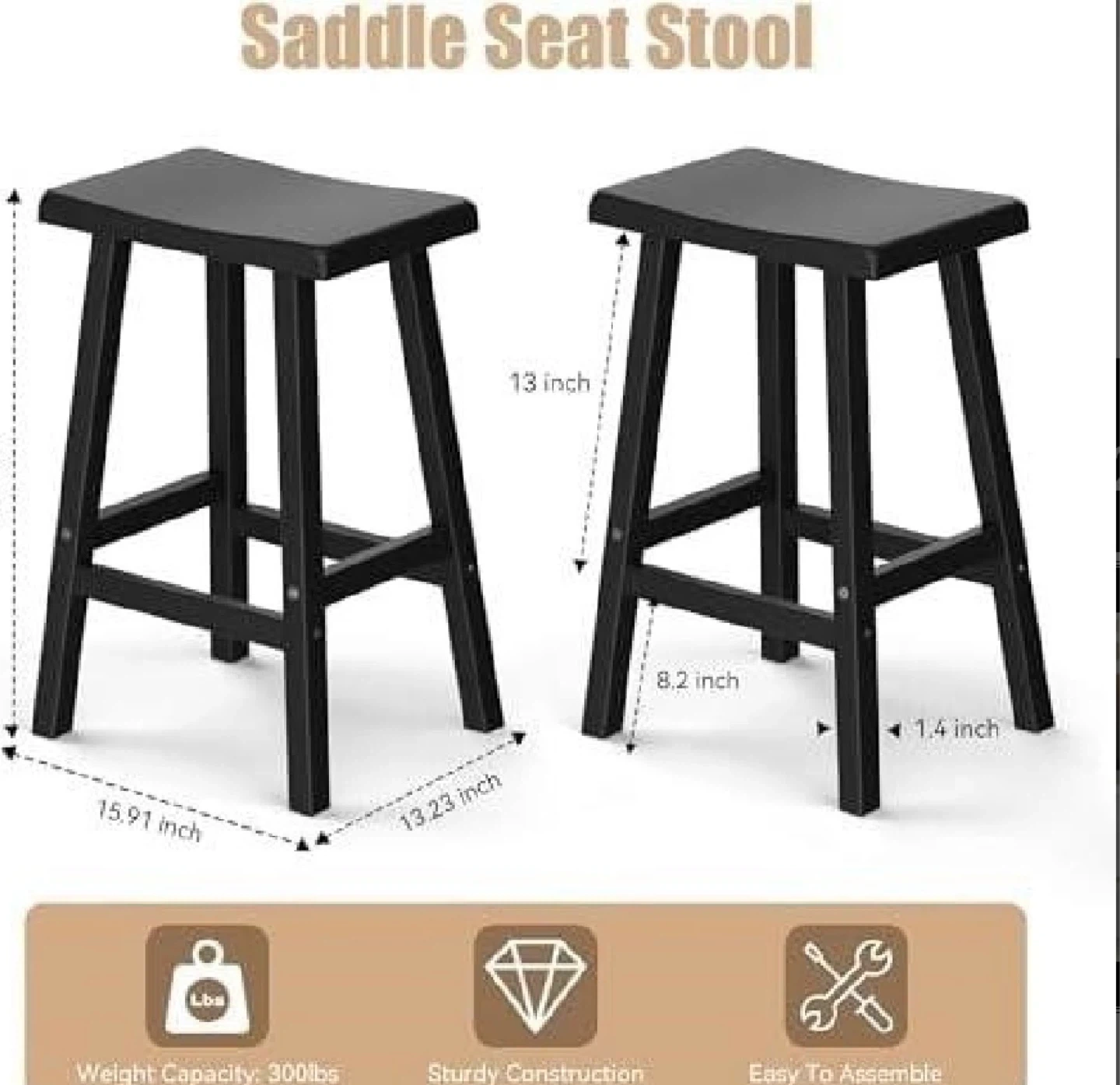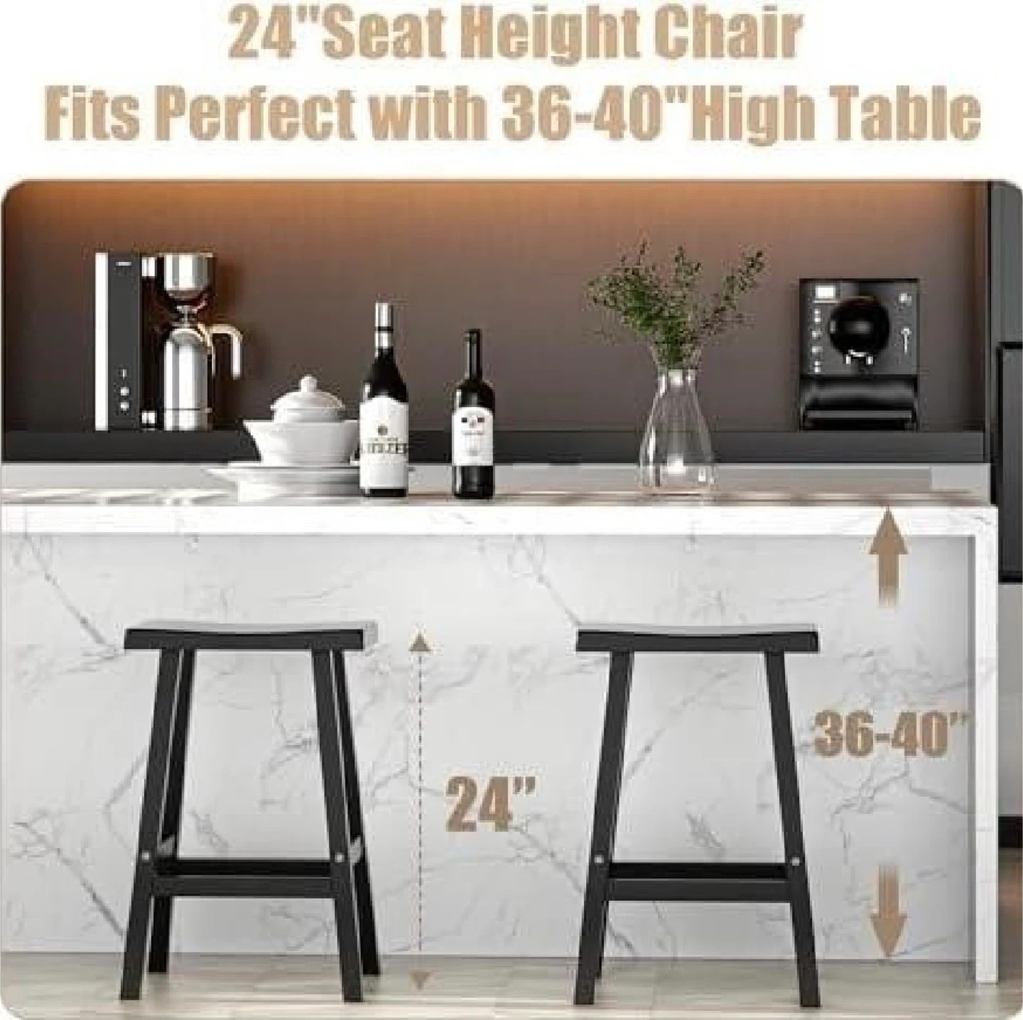 These new, pre-assembled 24-inch black waterproof stools are perfect for any kitchen or bar area. Sold as a set of two, these stools are durable and stylish, ready to complement your space with a touch of modern elegance.