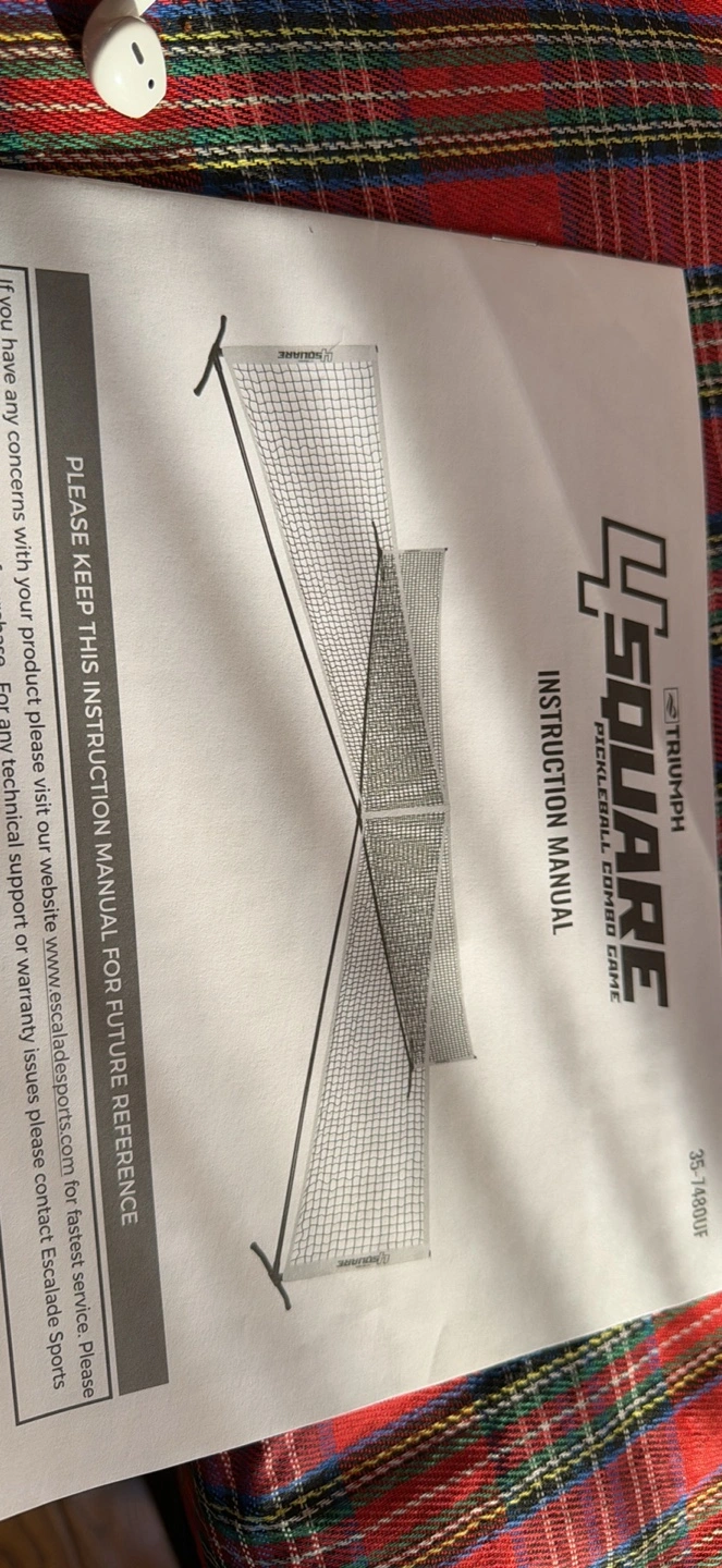 Foldable pickleball set. Includes four paddles, net, six pickleballs, and court markers. Great for backyard fun. Everything shown in photos included. New condition, never used.