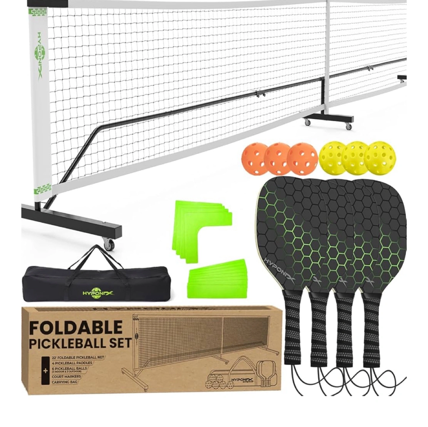 Foldable Pickleball Set - 4 Paddles, Net, Balls & Markers