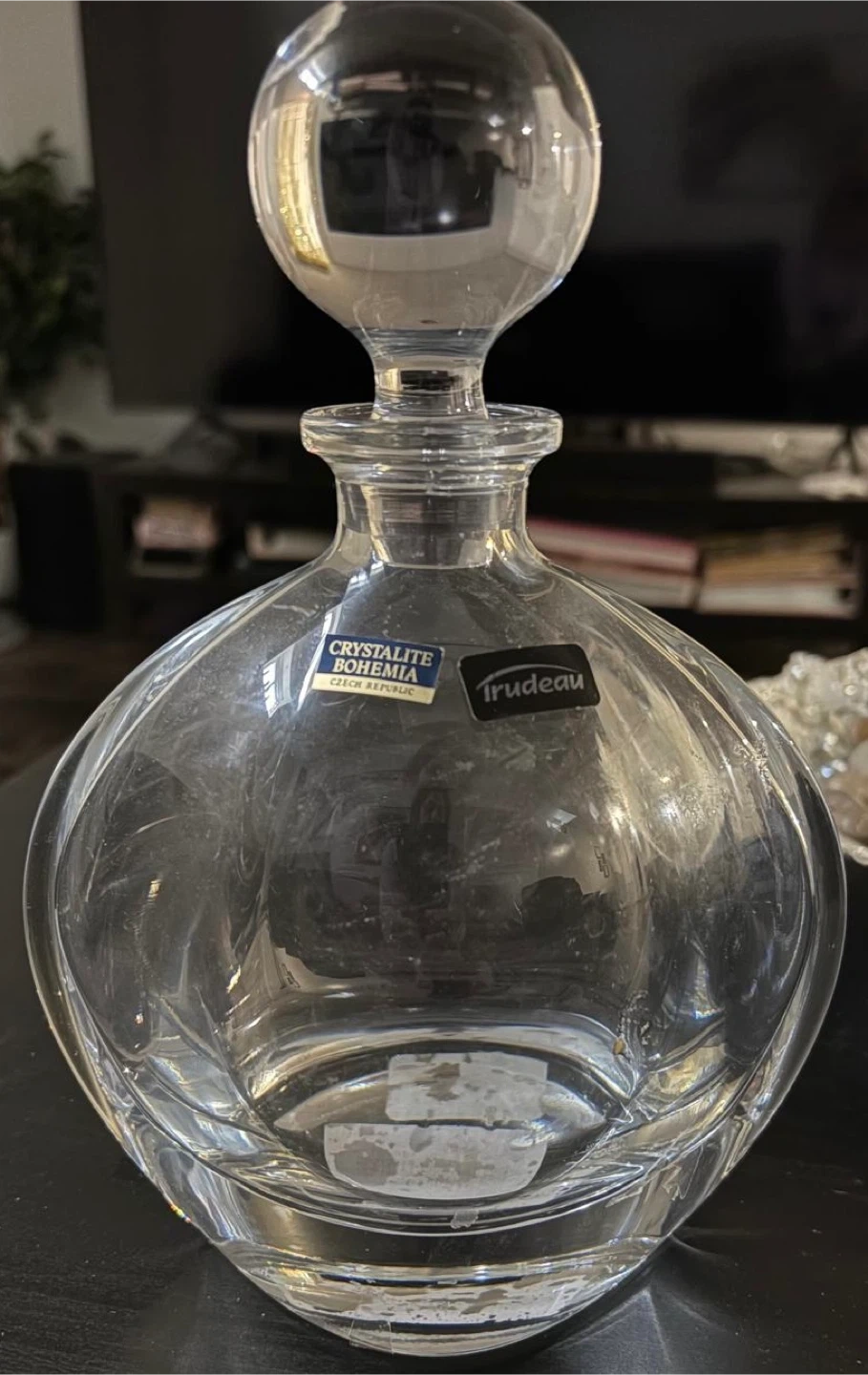 Crystalite Bohemia decanter made in Czech Republic. This glass decanter has a stopper for sealing. It's suitable for serving spirits or wine. Pick up from Maple Vaughan. Major intersection keele and Rutherford. Near Rutherford go station.