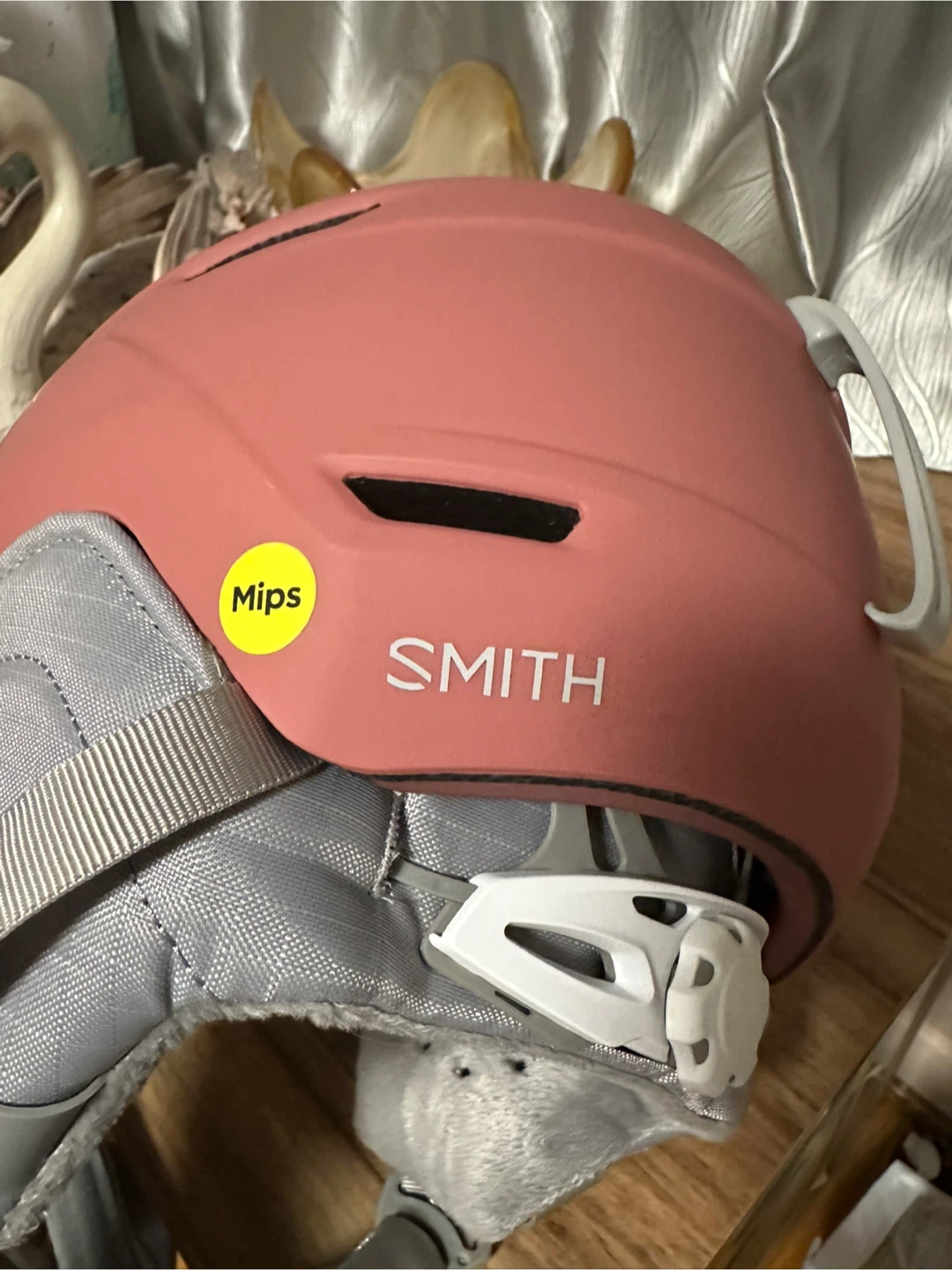 Selling a Smith Mirage ski/snowboard helmet in a lovely pink colour! It's in great shape and ready for the slopes. It has a MIPS sticker indicating it includes Multi-directional Impact Protection System technology for extra safety. Size small