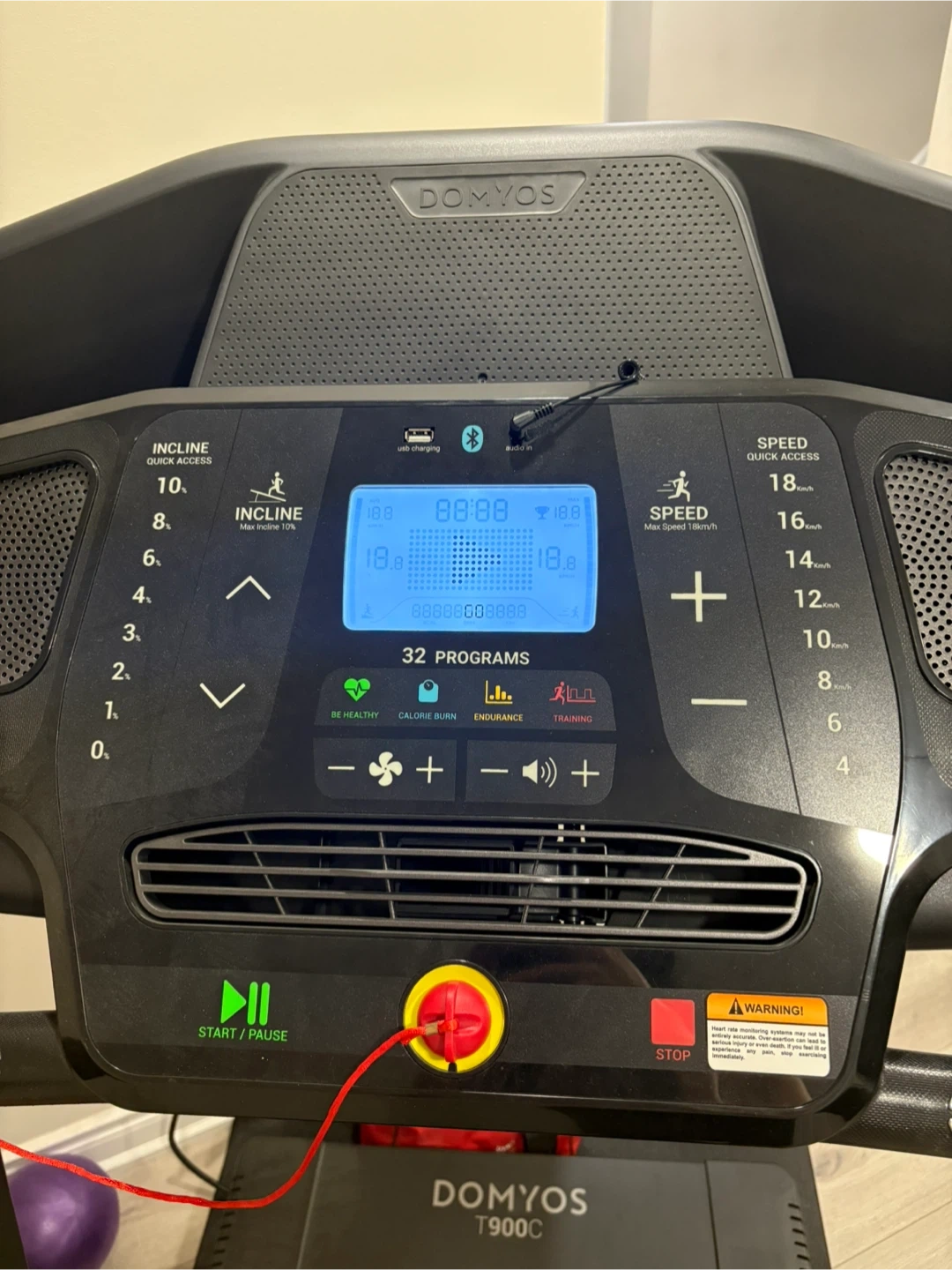 This DOMYOS T900C treadmill offers a running surface of 50cm x 143cm. It features 32 programs for varied workouts. It's a great option for home fitness training!