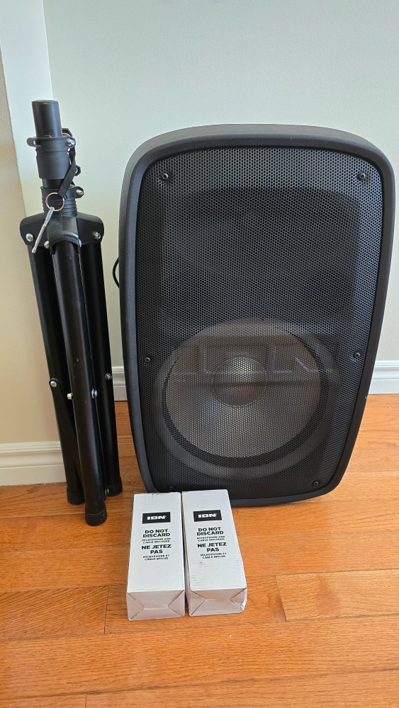- Includes stand and two microphones
