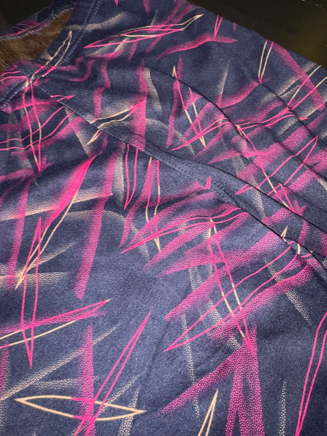 Cozy fleece-lined leggings with a fun abstract print. They're super soft and warm, perfect for staying comfy on chilly days. They feature a comfortable elastic waistband.