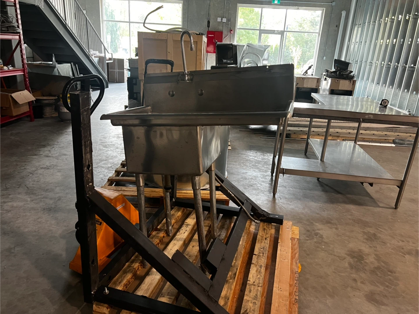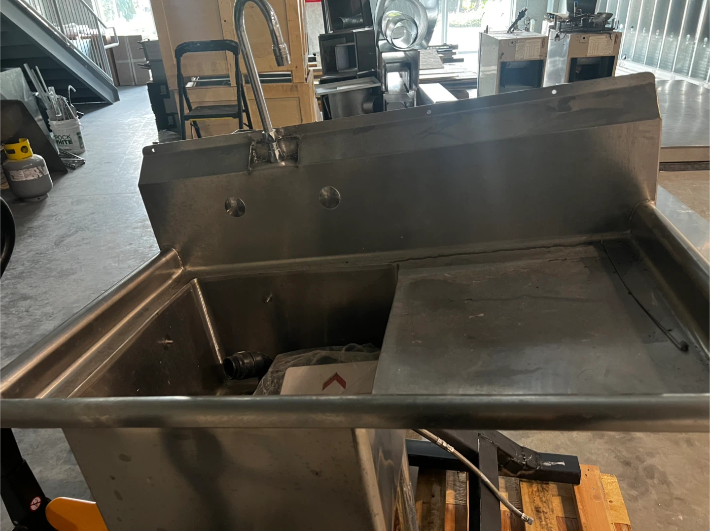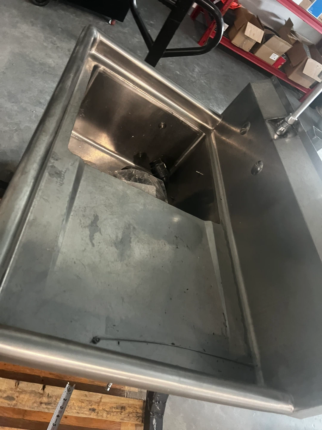 Selling a stainless steel utility sink, perfect for a garage, workshop, or commercial space. It's sturdy and in good condition, ready to be put to work!