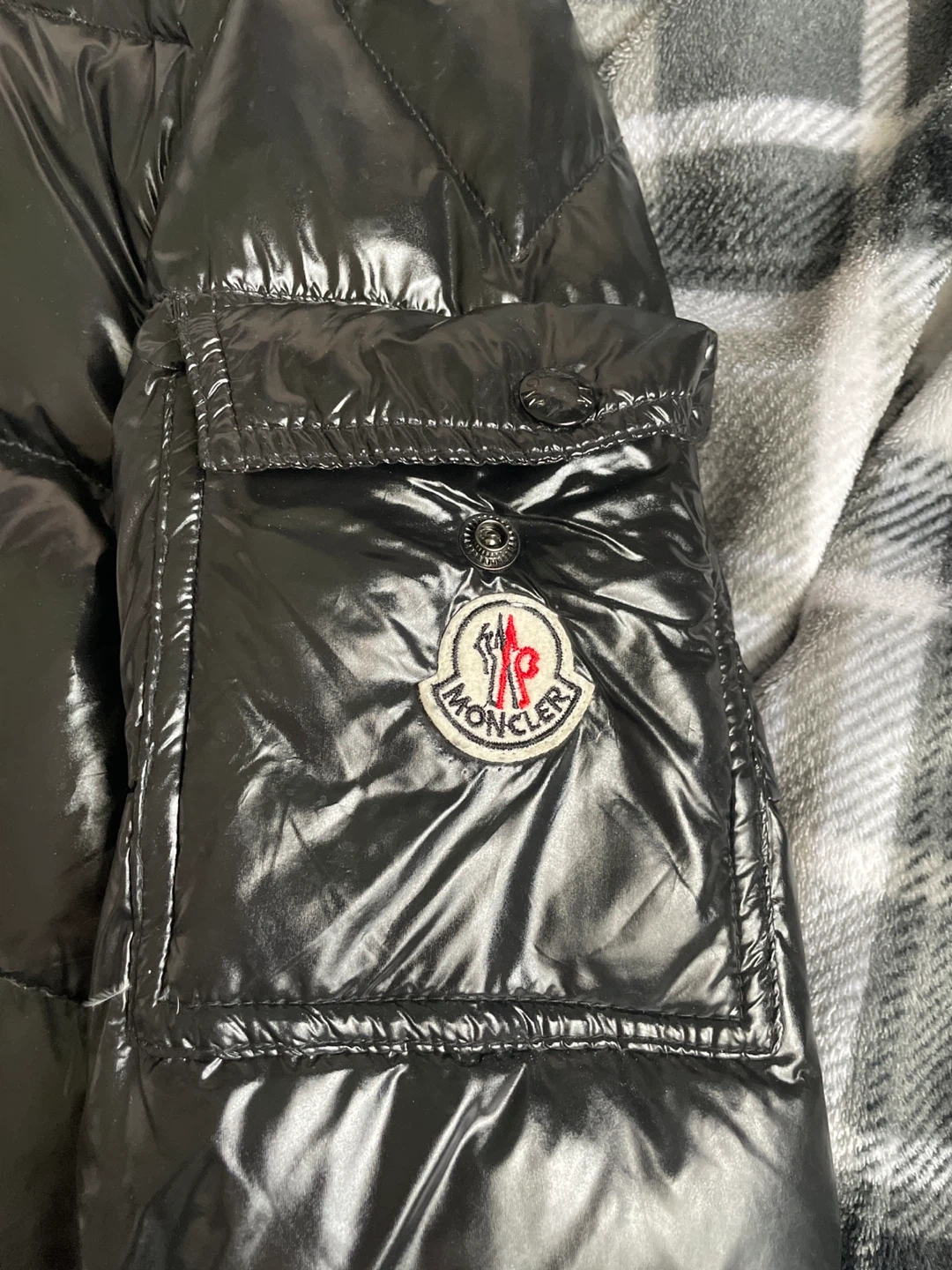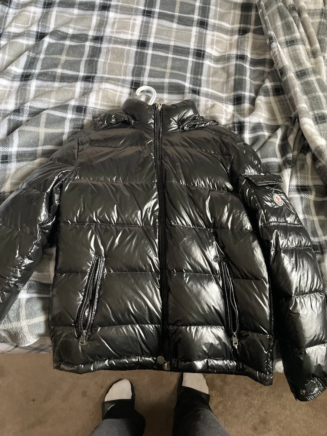 Here's a Moncler puffer jacket in black! It's in great condition and ready to keep you warm this winter