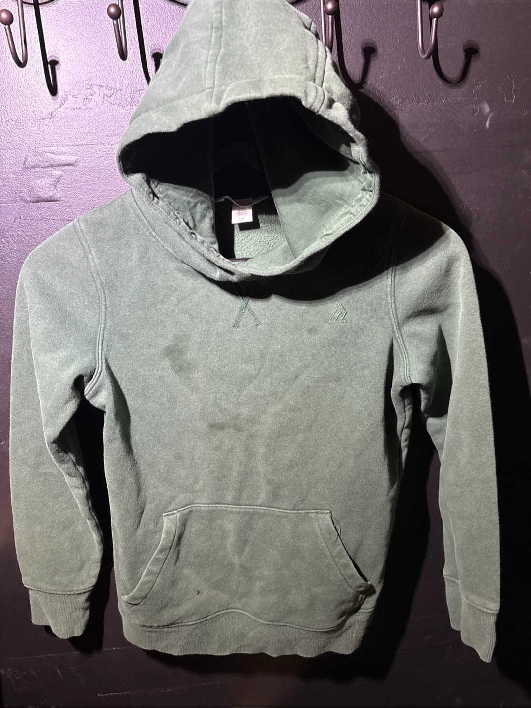 Selling a Tentree Juniper Hoodie in size S/P. It's a nice green colour and has a cozy feel. There are some signs of wear.