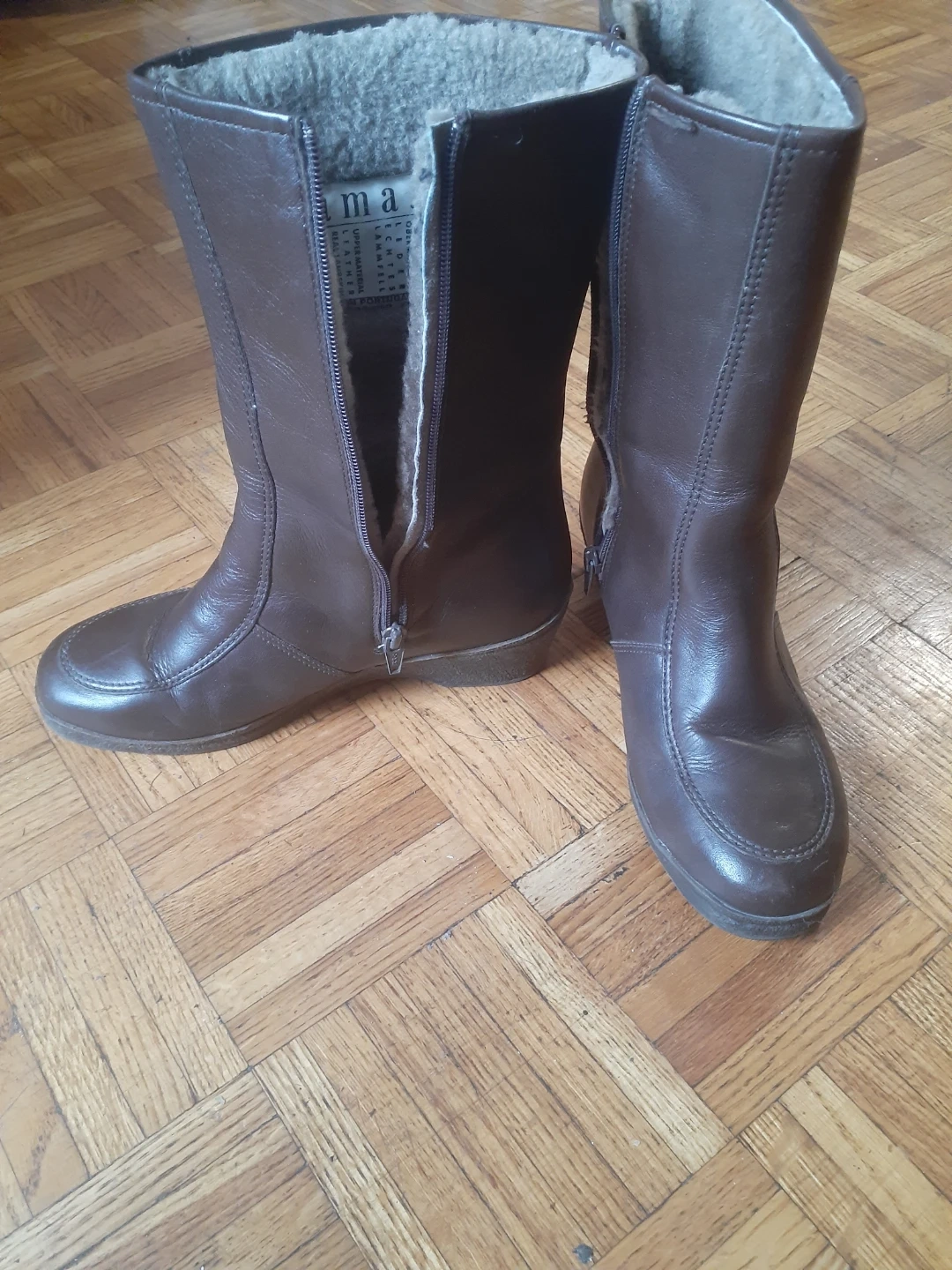 LAMS boots made with leather upper material and a warm lambskin lining. These mid-calf boots feature side zippers for easy wear. Made in Portugal.