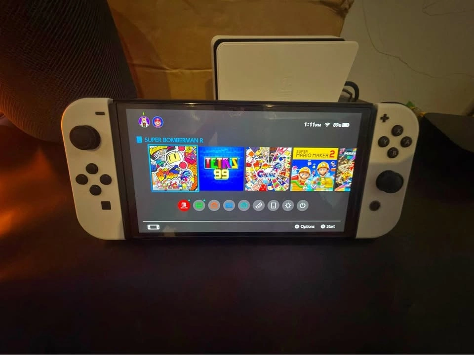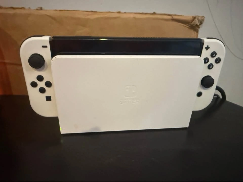 Selling my Nintendo Switch OLED model in excellent used condition. This console features a vibrant 7-inch OLED screen, enhanced audio, and 64GB of internal storage. It comes with all original accessories, including the dock, Joy-Con controllers, and power adapter.