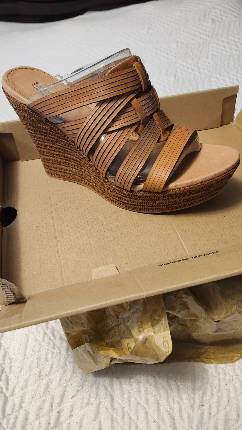 UGG Women's Tan Leather Wedge Sandals