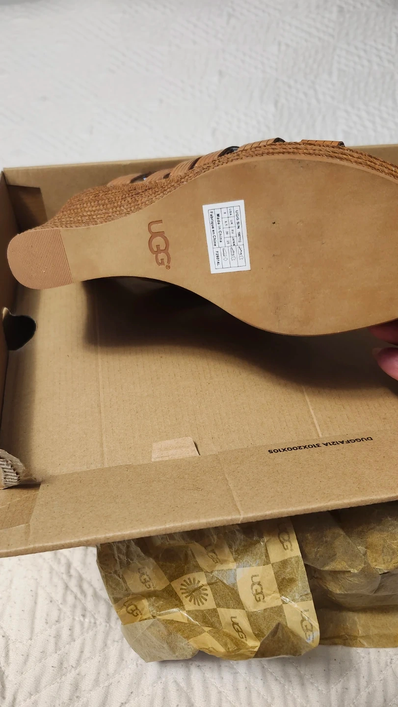 UGG Women's Tan Leather Wedge Sandals