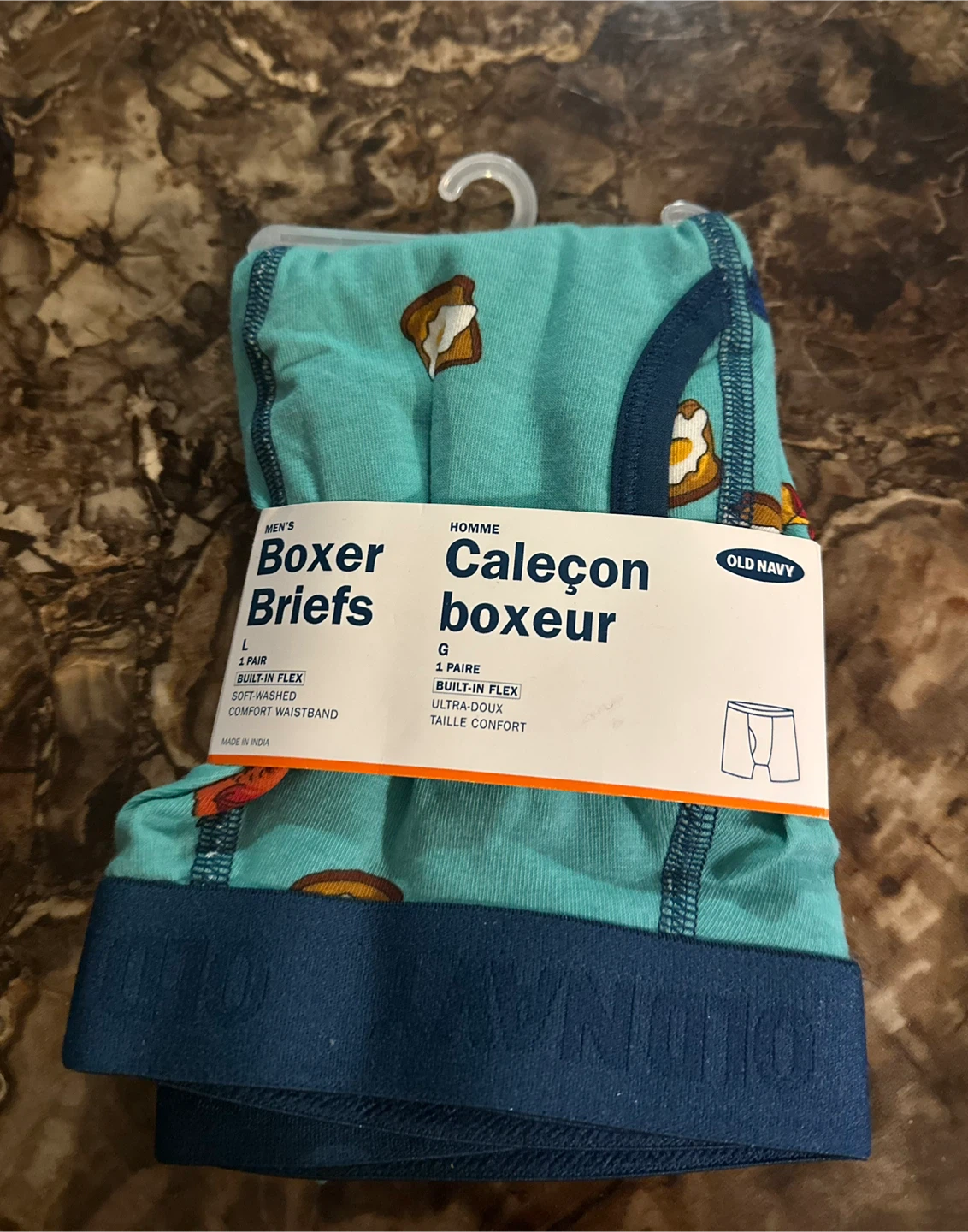 Selling a brand new pair of Old Navy boxer briefs! They are a size large and feature a fun toast pattern. They have a built-in flex waistband for extra comfort.