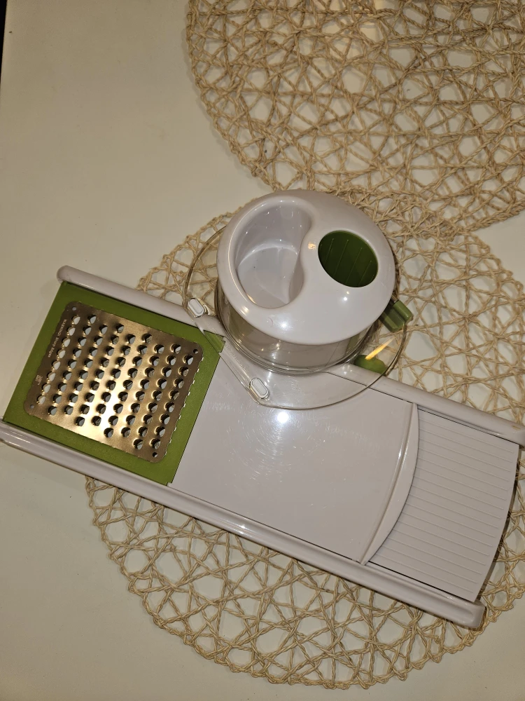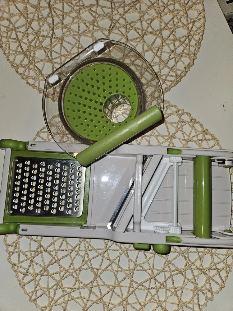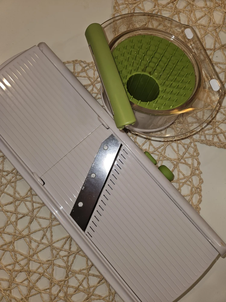 I'm selling a new mandoline slicer. It's in great shape and ready to help you prep your veggies with ease! It comes with all the attachments you see in the pictures.