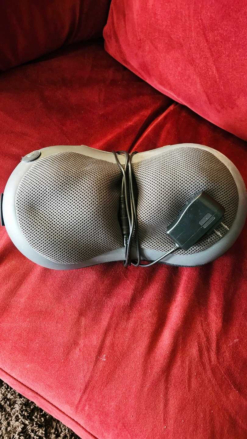 This is a Snailax shiatsu neck and shoulder massager with heat. It's made with a breathable mesh fabric and includes a power adapter. This massager is great for soothing tense muscles after a long day.