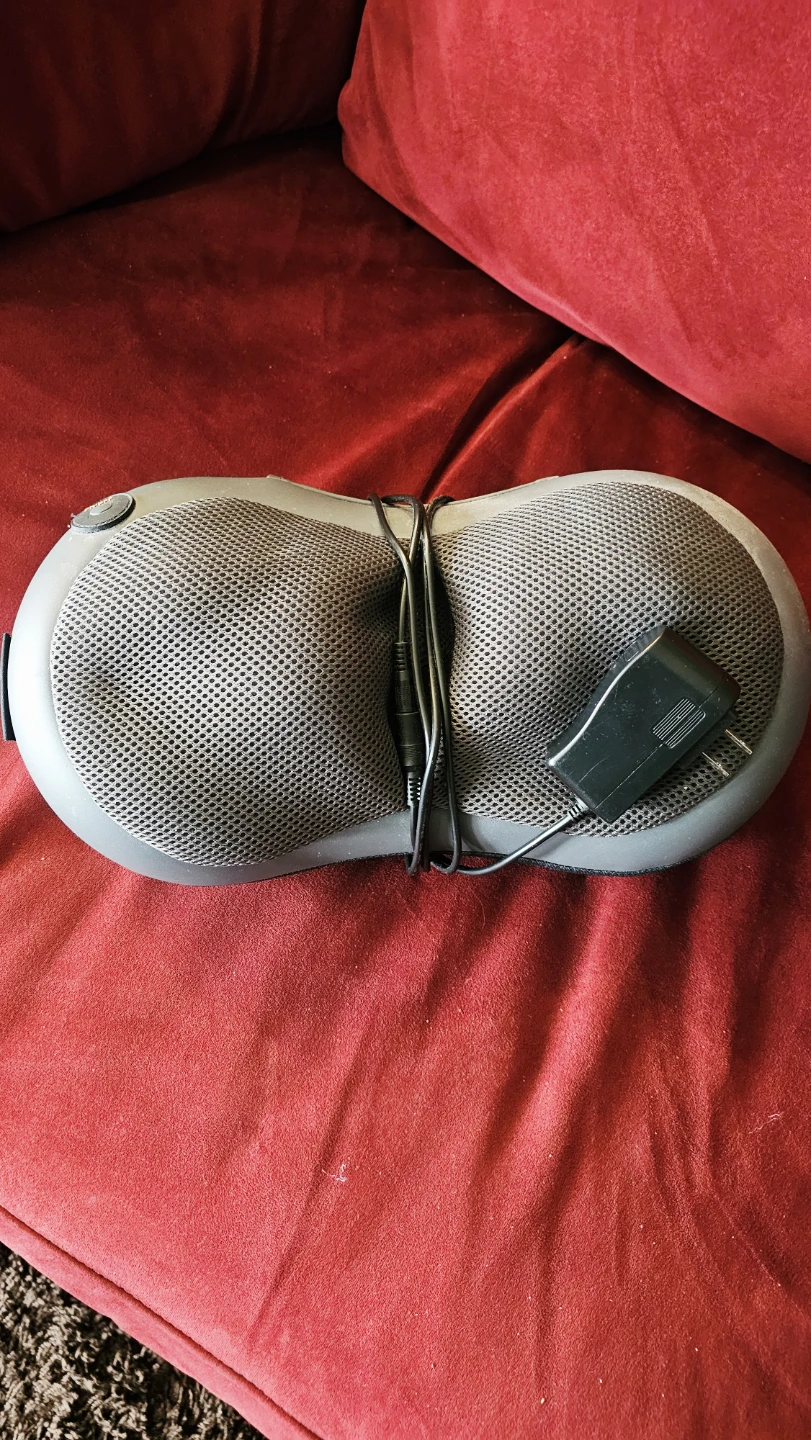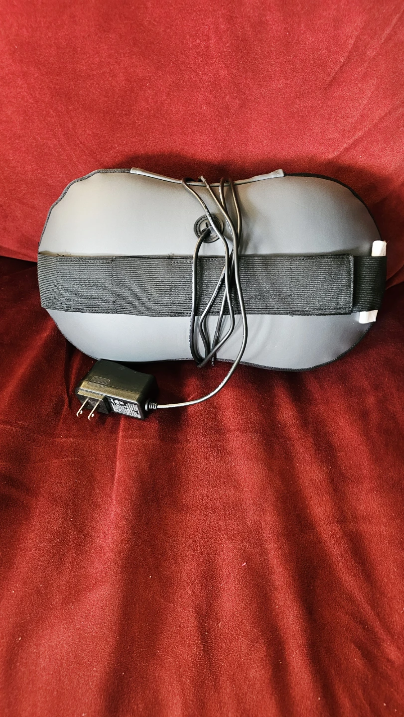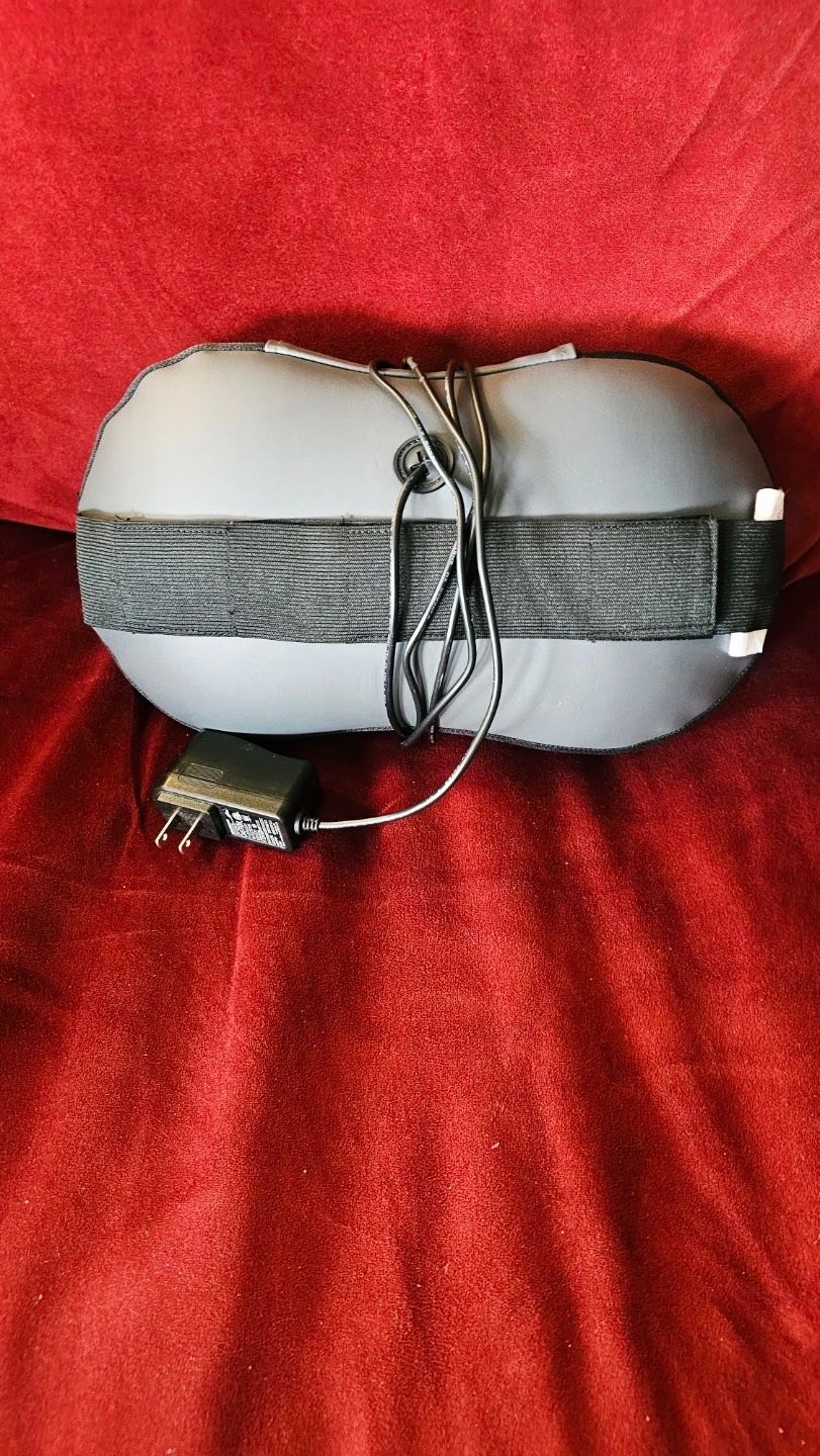 This is a Snailax shiatsu neck and shoulder massager with heat. It's made with a breathable mesh fabric and includes a power adapter. This massager is great for soothing tense muscles after a long day.
