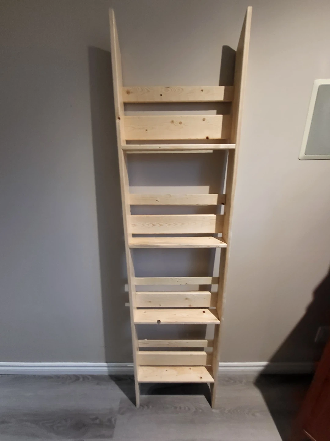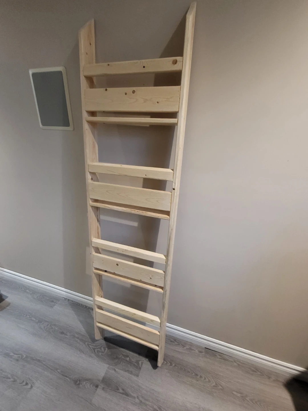 A handmade wooden ladder shelf, perfect for displaying books or decor. This would be great for a small space needing vertical storage!