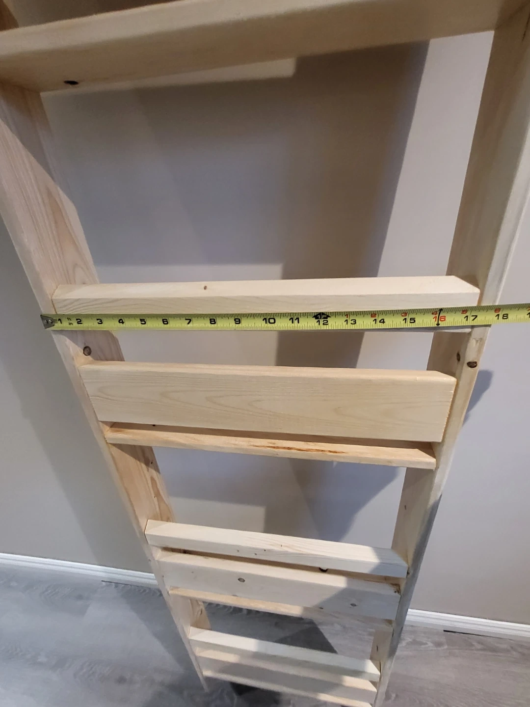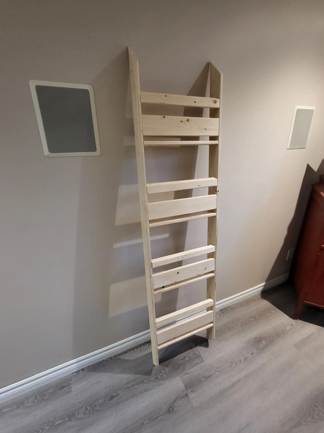 A handmade wooden ladder shelf, perfect for displaying books or decor. This would be great for a small space needing vertical storage!