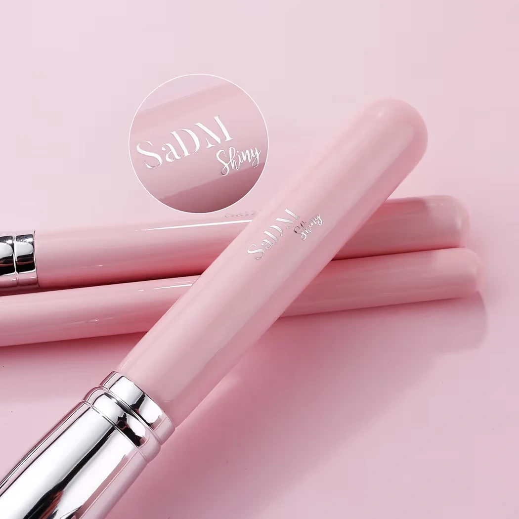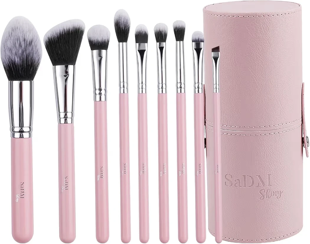 SaDMI Shiny 9-Piece Pink Makeup Brush Set with Case
