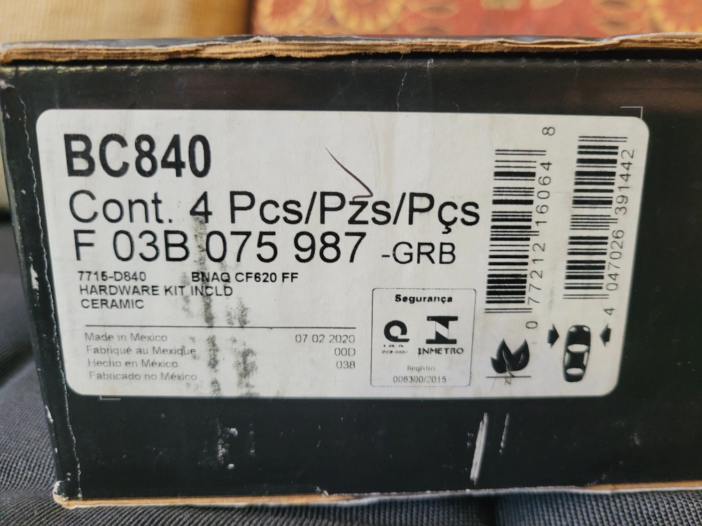 New, premium, front Bosch QuietCast ceramic disc brake pads for European vehicles. Ceramic compound for minimum dust and longest life brake pads. Four pieces included. Part number BC840,