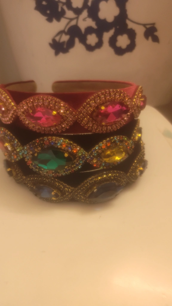 Selling a set of jeweled headbands in assorted colors. These are perfect for adding a touch of sparkle to any outfit! They're in great condition and ready for a new home