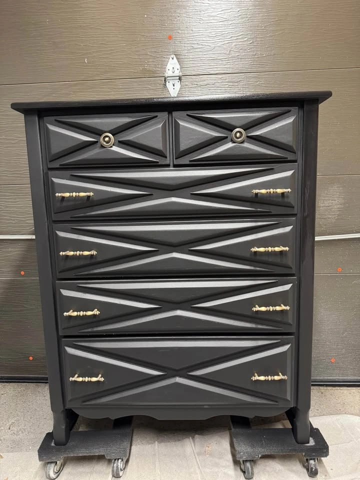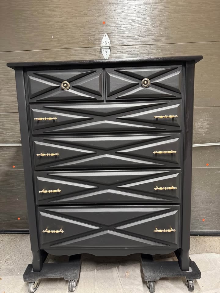 Modern Black Geometric 6-Drawer Dresser – Newly Refinished