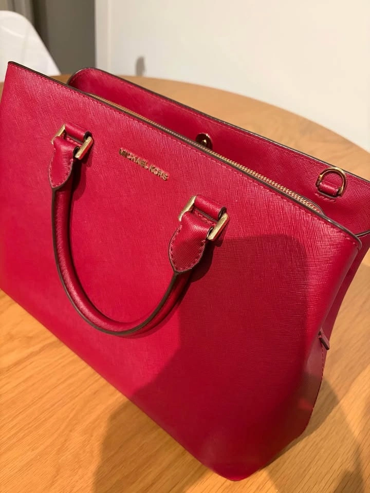 Michael Kors Saffiano Leather Satchel (Cherry Red)