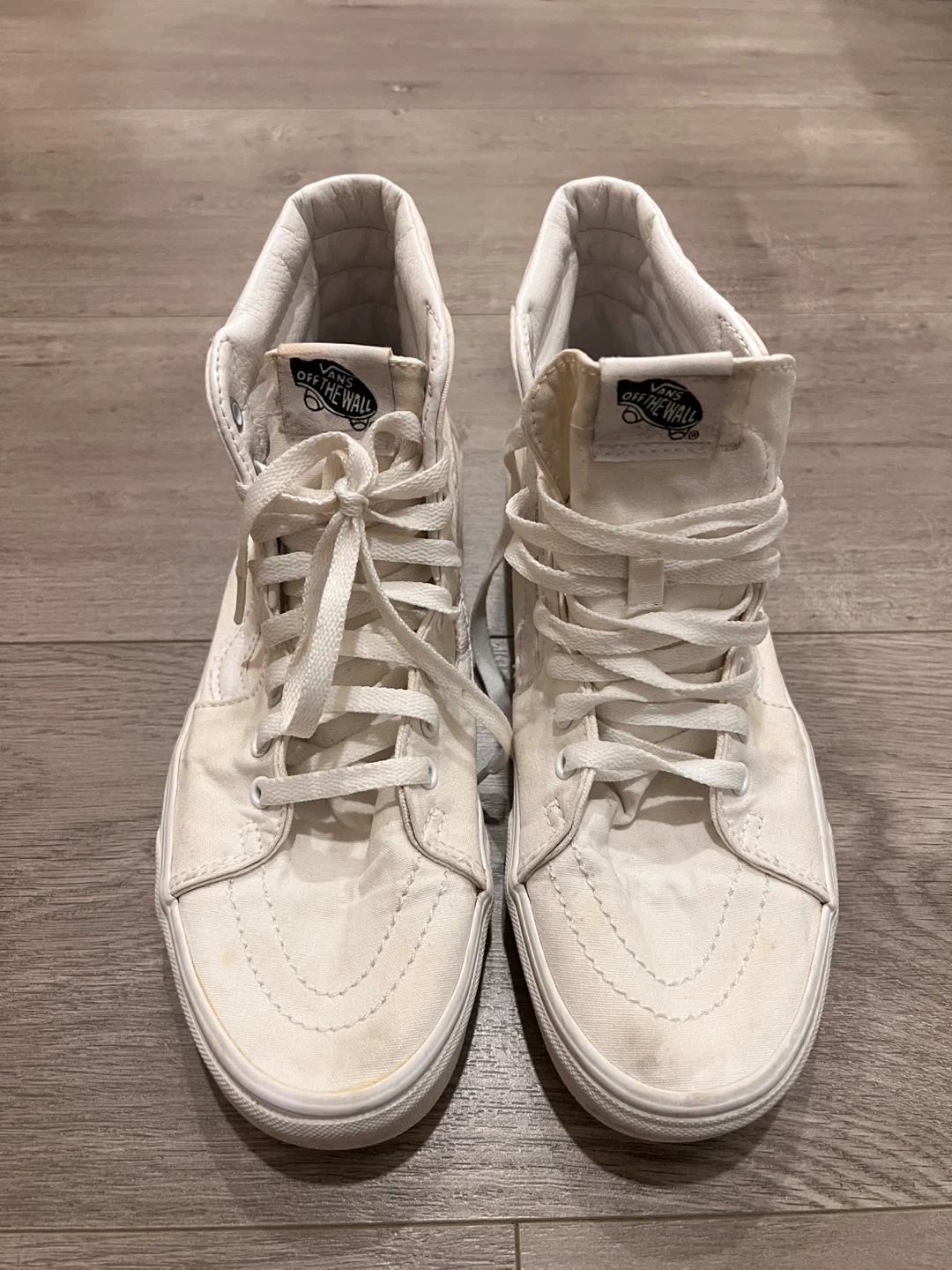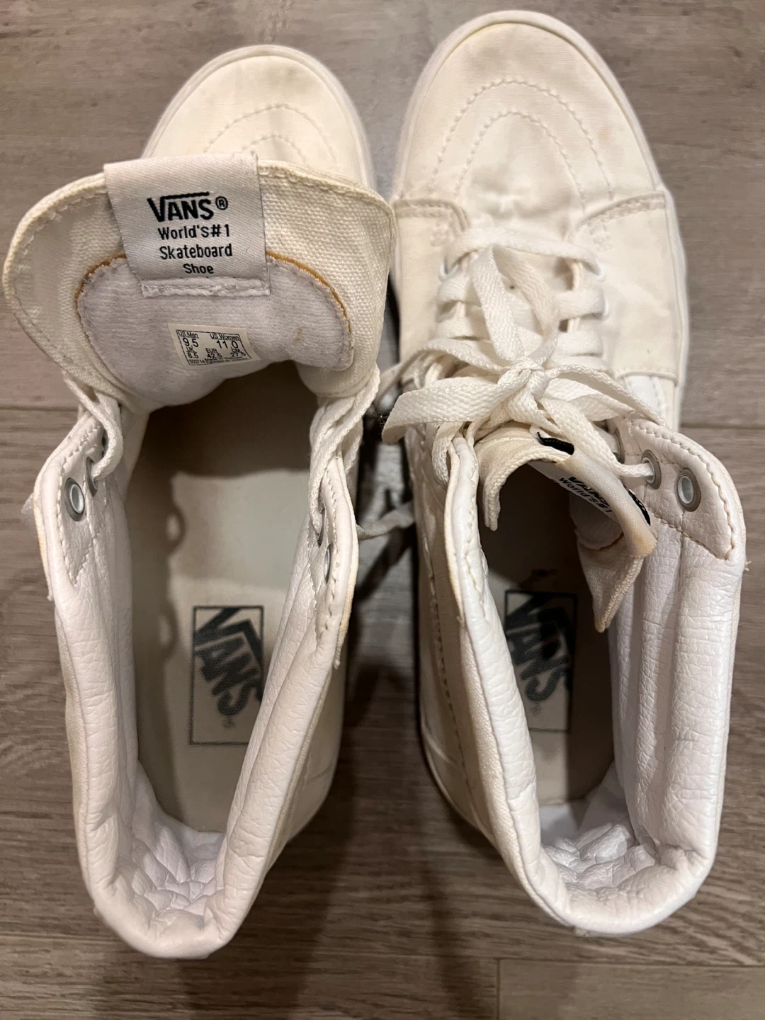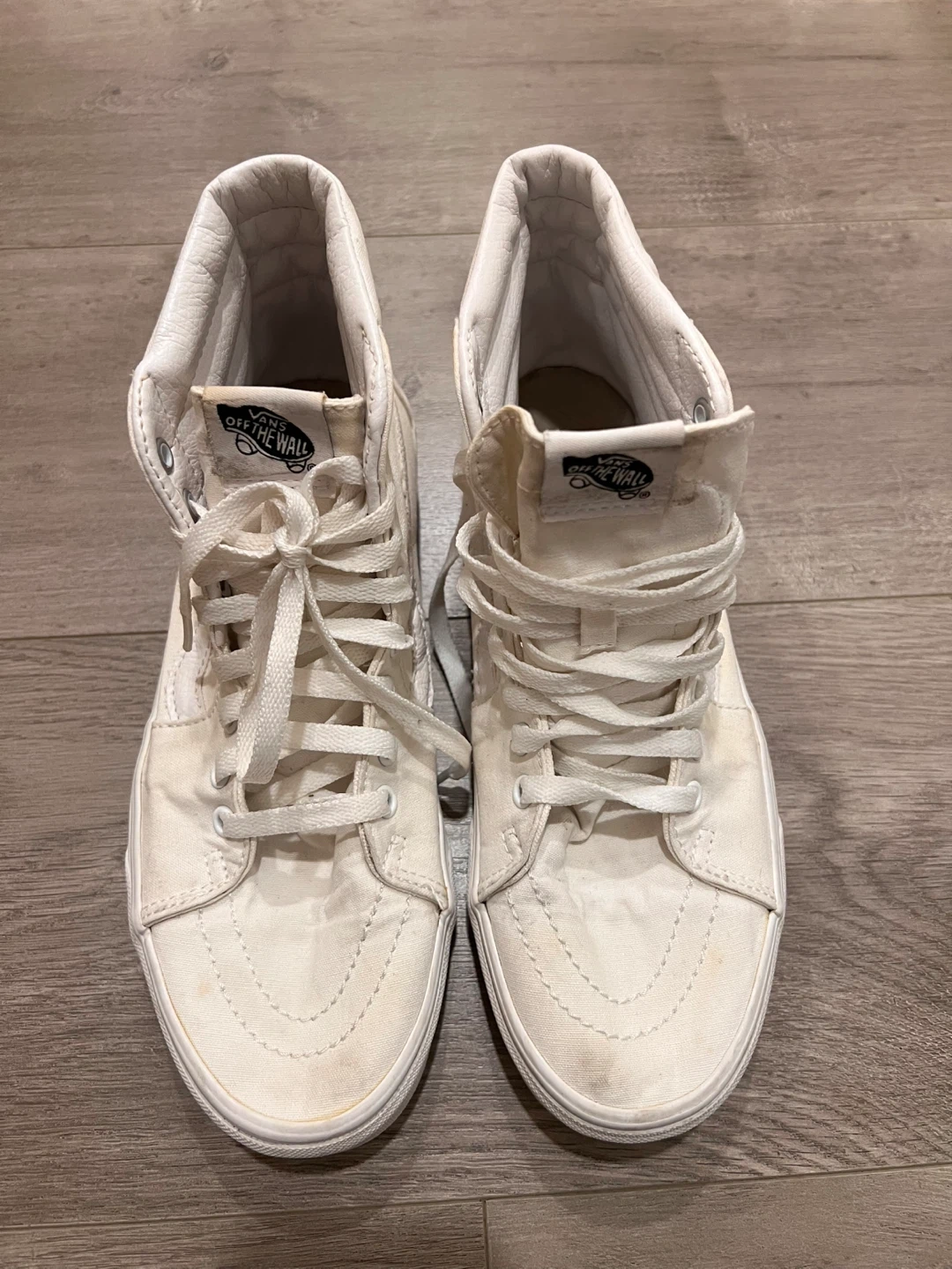 Buy & SellVans Off The Wall Sk8-Hi High Top Sneakers 9.5Vans Off The Wall Sk8-Hi High Top Sneakers 9.5$25Classic white Vans high-top sneakers. Canvas upper with lace-up closure. Great for everyday casual wear. Men’s 9.5 Women’s 11BrandVansWHERE TO MEETCapilanoView MapSELLERverifiedMNLions Gate17814 reviews0 chats·0 favorites·5 viewsSEND CHAT TO SELLERHi MN! I’m interested in your listing.Hi MN! I’m interested in your listing.Get the Karrot app to chatSign In to chat