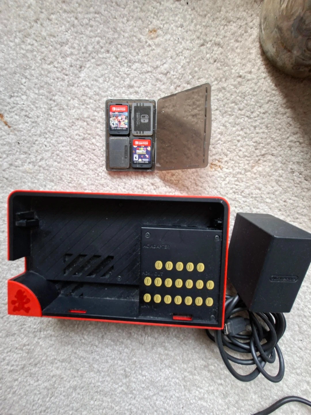 *** TESTED *** IN GREAT CONDITION *** ONLY USED IT FOR 2 MONTHS *** ...Red Nintendo Switch dock with AC adapter, HDMI, LAN ports and game cartridges for Mario Kart 8 Deluxe and Mario Party Superstars. This set includes the dock, power adapter, and two games for your Switch console. I'm seeing these games going for $55 - $65 looking to move this quick so I'm asking $125 for all 3 open to negotiate, thanks. Can deliver from Langley to Vancouver.... I'm located right beside Inlet station on the millennium line. I also have other nintendo stuff if interested ... A Wii with drums and other accessories.