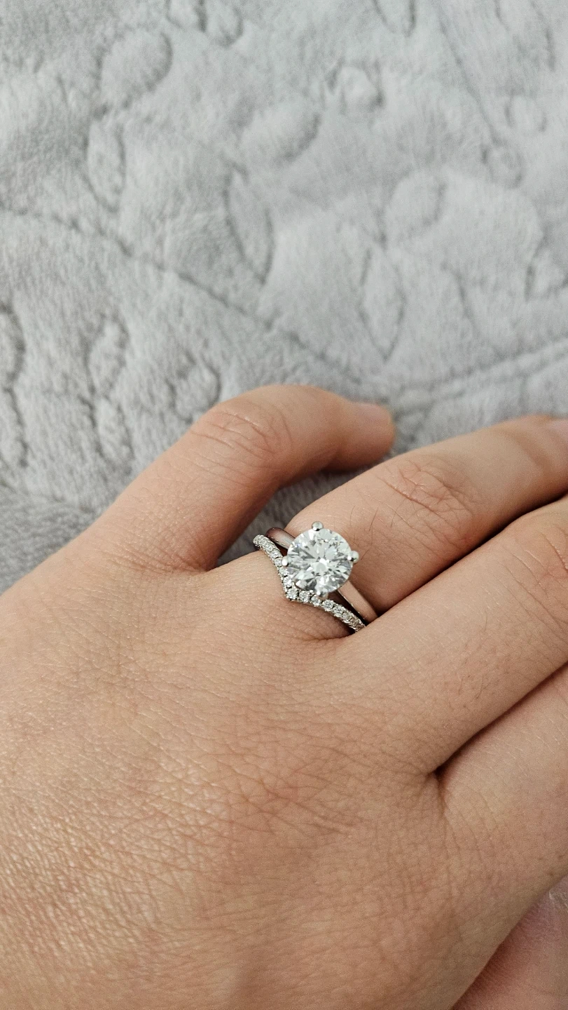It's designed to be worn as a stacking band. This ring would be lovely for adding a touch of sparkle to an everyday look!