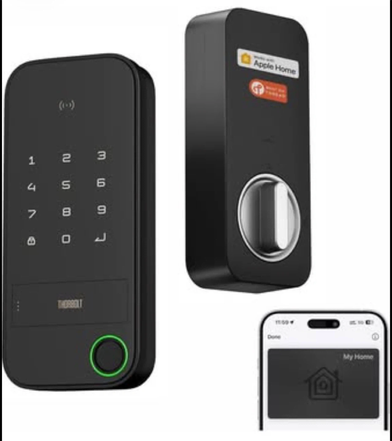 X1 Apple Home Key Lock, iOS ONLY Smart Keyless Entry HomeKit Door Lock with Fingerprint, Keypad Deadbolt Lock Works with HomeKit Over Thread (Border Router Required), IP65 Weatherproof, Black