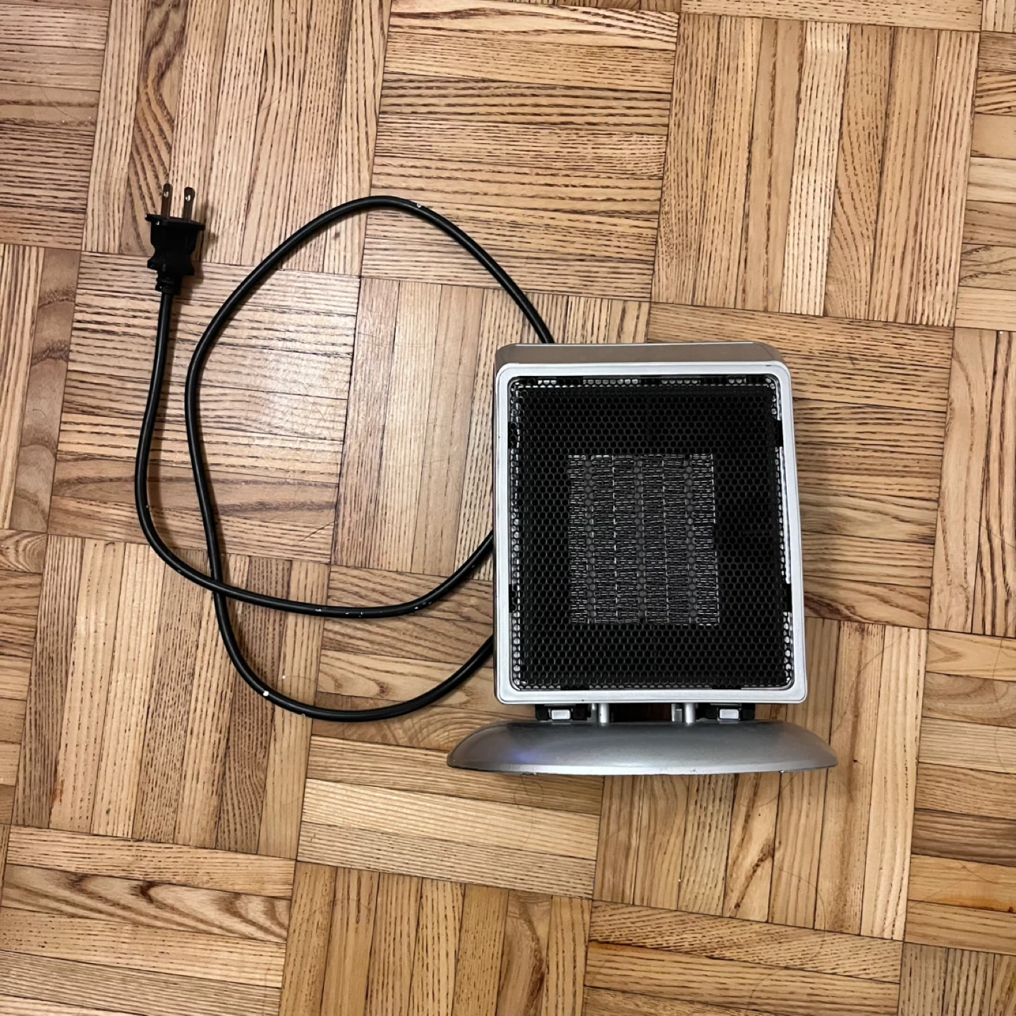 Desk size with two settings. It’s six years old and still kicking it. It will toast a small bedroom space no problem if you shut the door. Cheap because it’s off season.