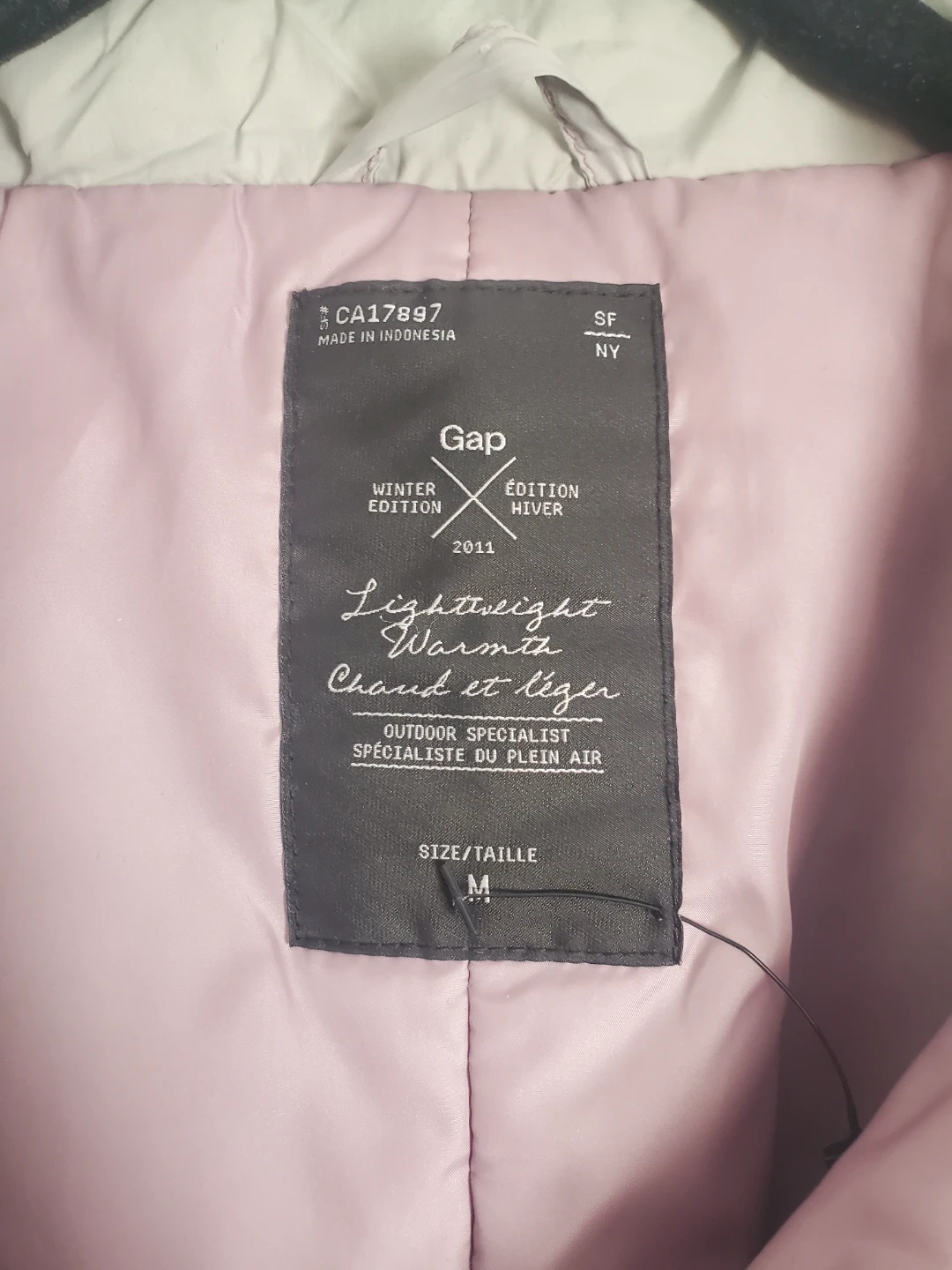 This Gap jacket is from their winter edition. It's a lightweight warmth style, perfect for cooler weather. Made of outdoor specialist material, it's a size medium.