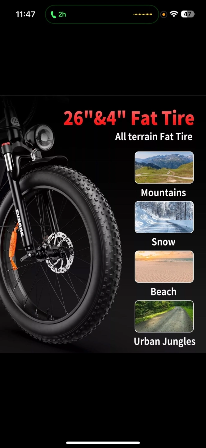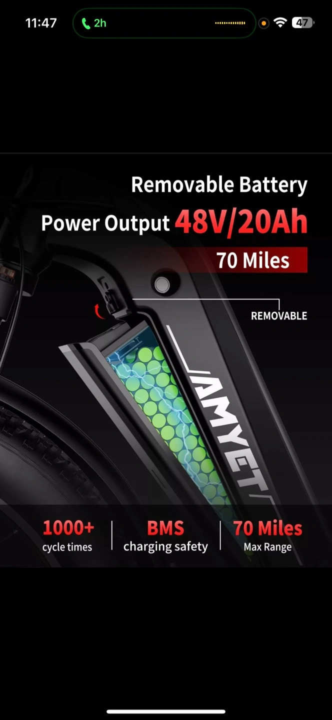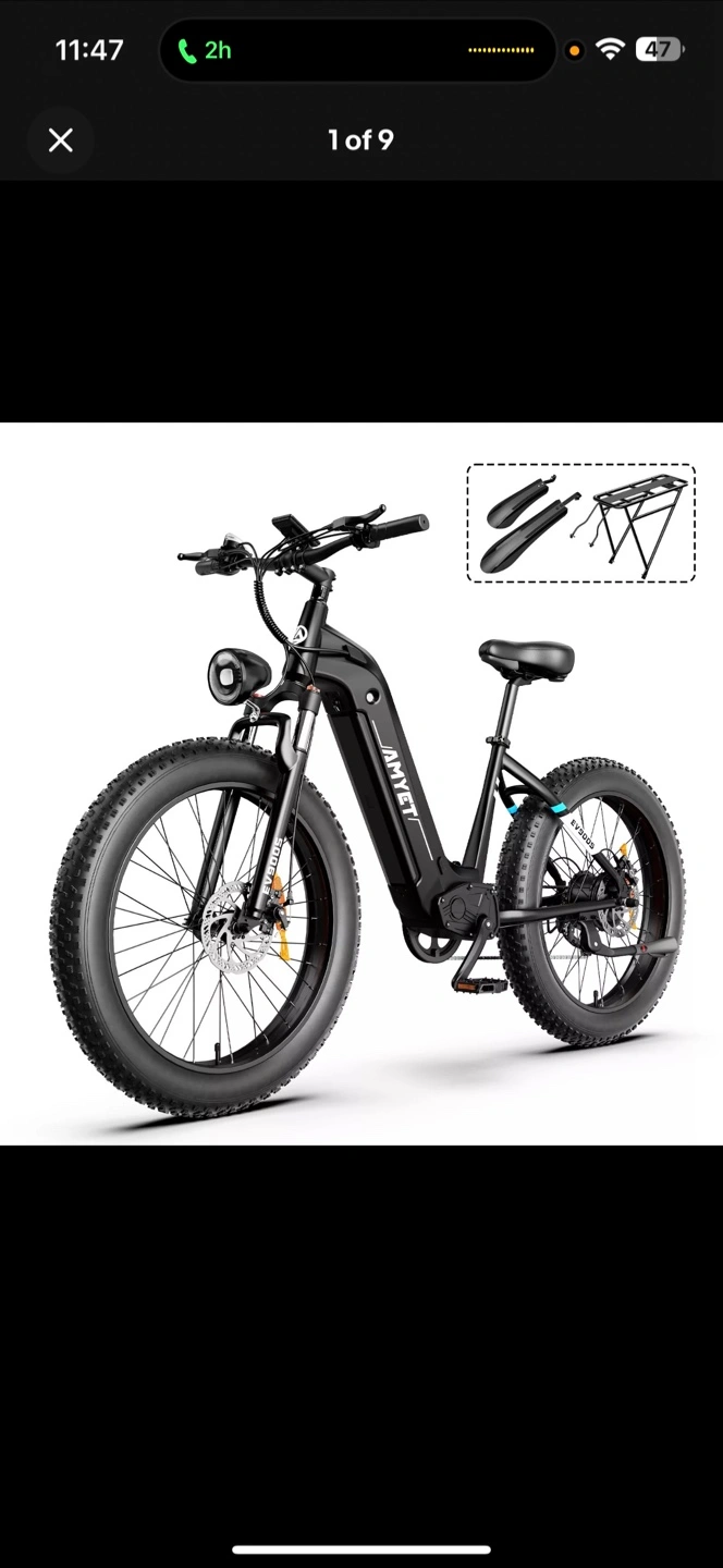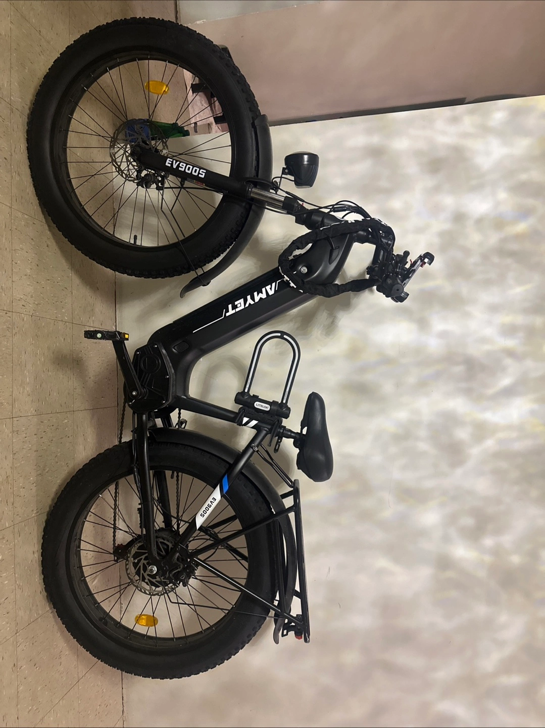 Selling an AMYET EV900S electric bike! It features a removable battery with a power output of 48V/20AH and a max range of 70 miles. The powerful brushless motor has a peak of 1500W. It also has 26"&4" fat tires, perfect for all terrains. The frame is made of 6061 aluminum.