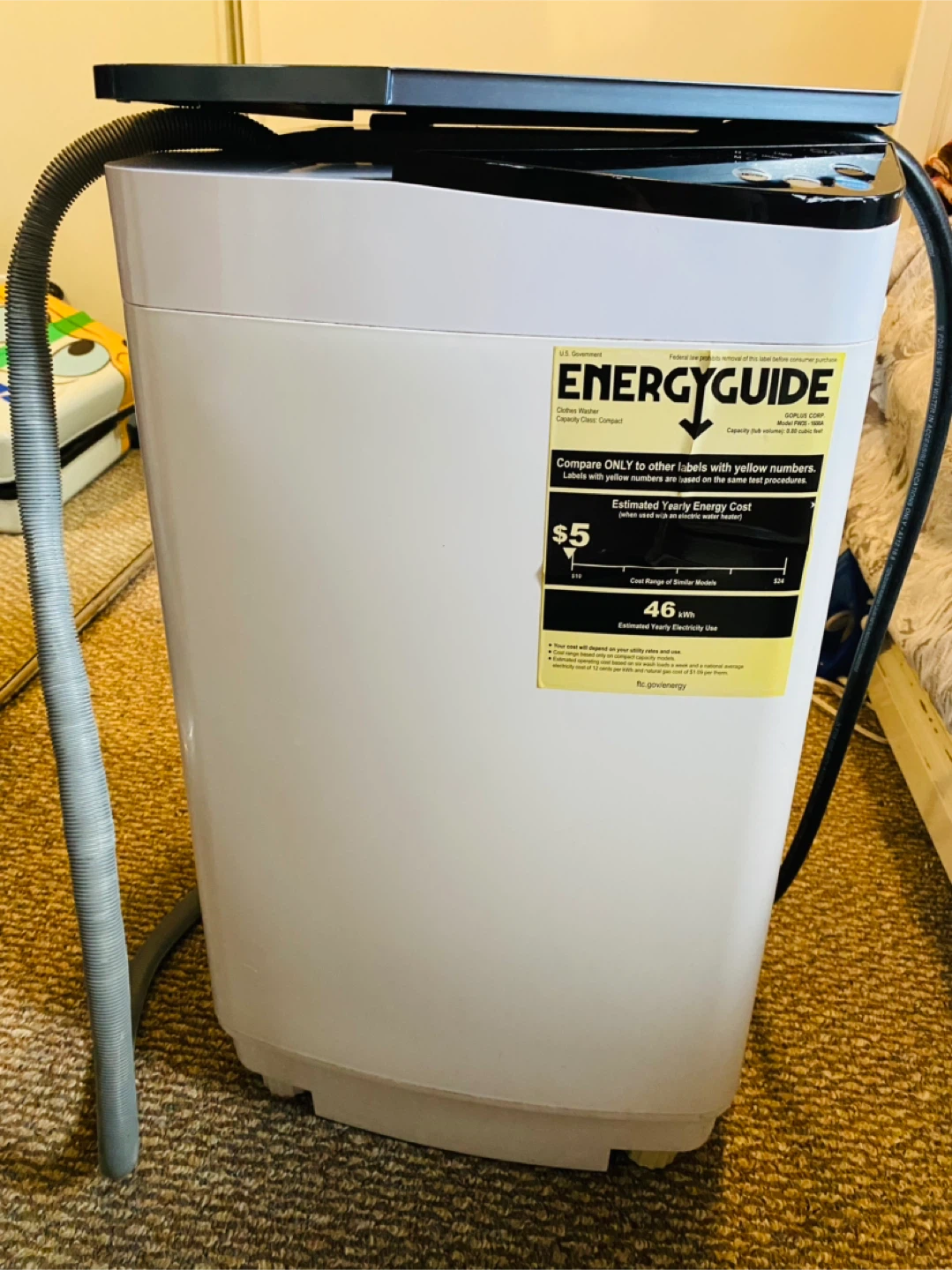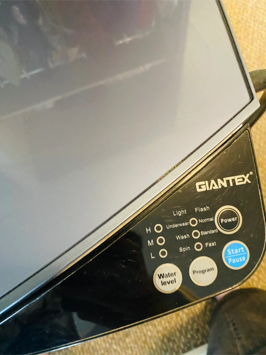 This is a Giantex portable washing machine and spin dryer. It's a compact unit designed for any loads. Several wash cycles are available, including light, normal, and standard.