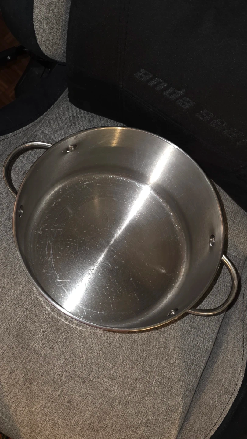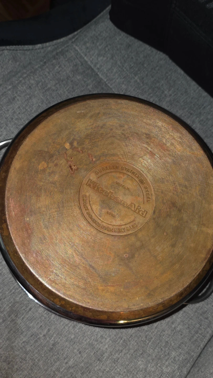 This is a durable KitchenAid stock pot made from stainless steel. It features an impact-bonded, even-heat base. This pot is suitable for a variety of cooking tasks.