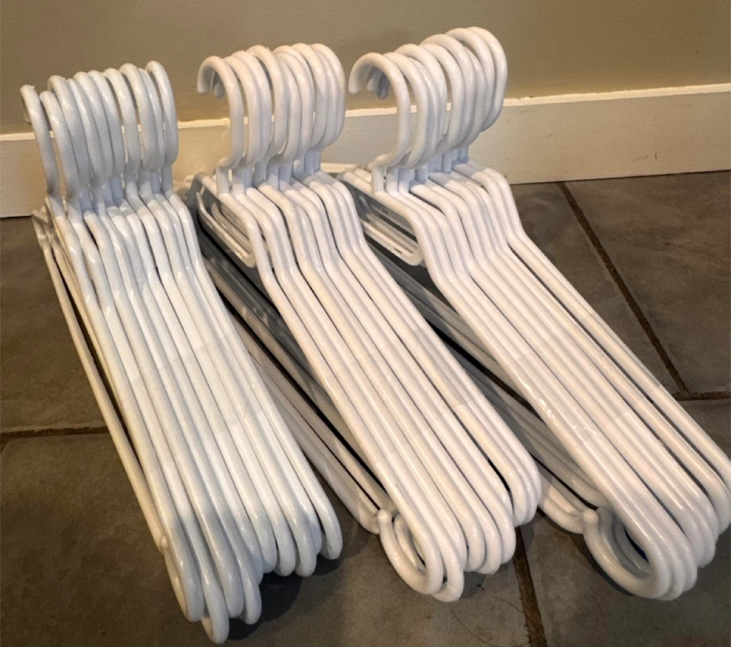 FREE!!! Set of 30 White Clothes Hangers & 2 Storage Bins