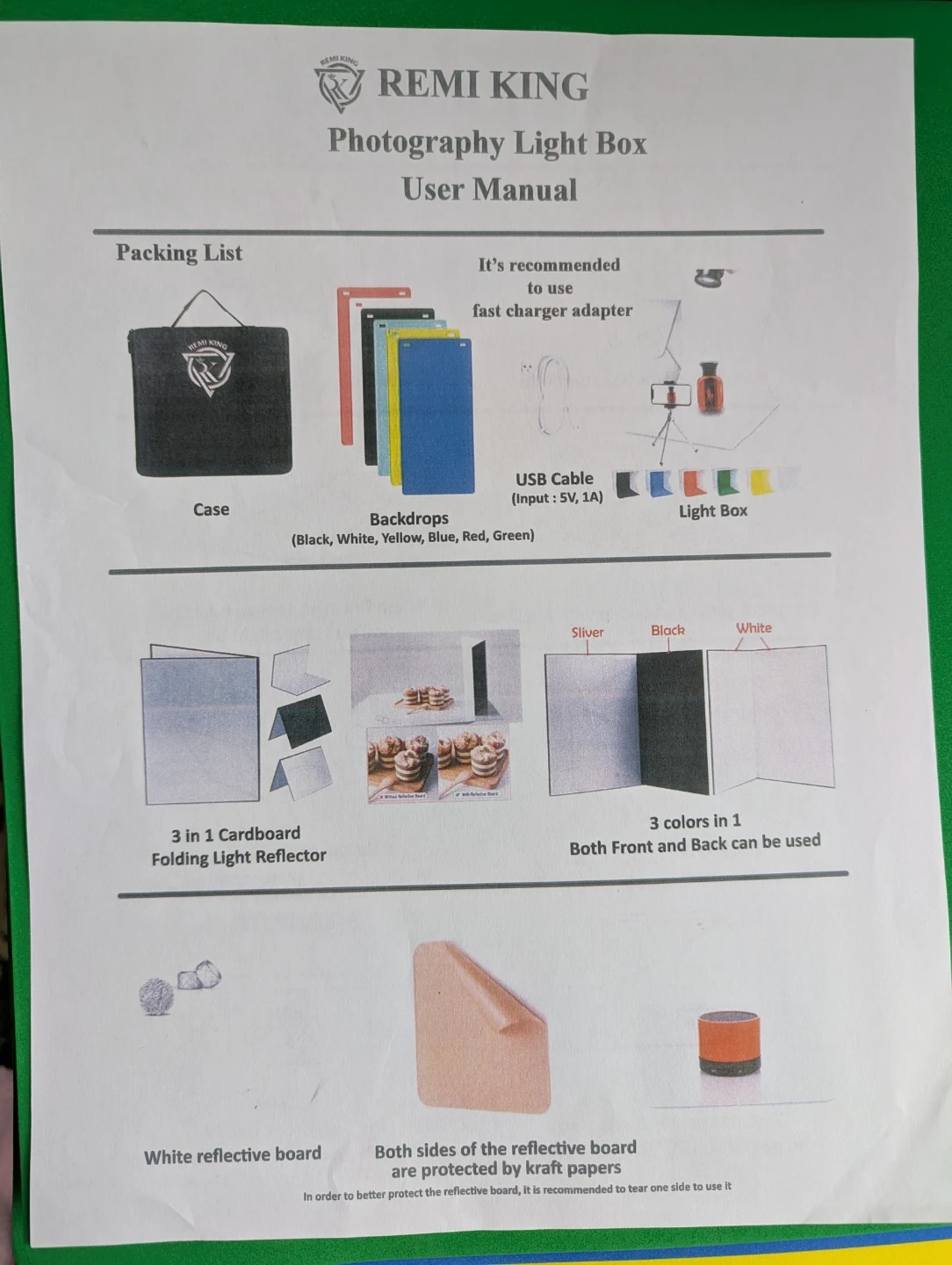 ✔️ KIT INCLUDES: 1 Photo Light Box (12" x 12") (30cm x 30cm), 2 LED Strip Lights, 1 USB Power port cable connected to any USB ports, 6 Color Backgrounds (Red, Black, Blue, White, Green, Yellow), 1 Light reflector, 1 White Reflective board, (1) Carry case bag.