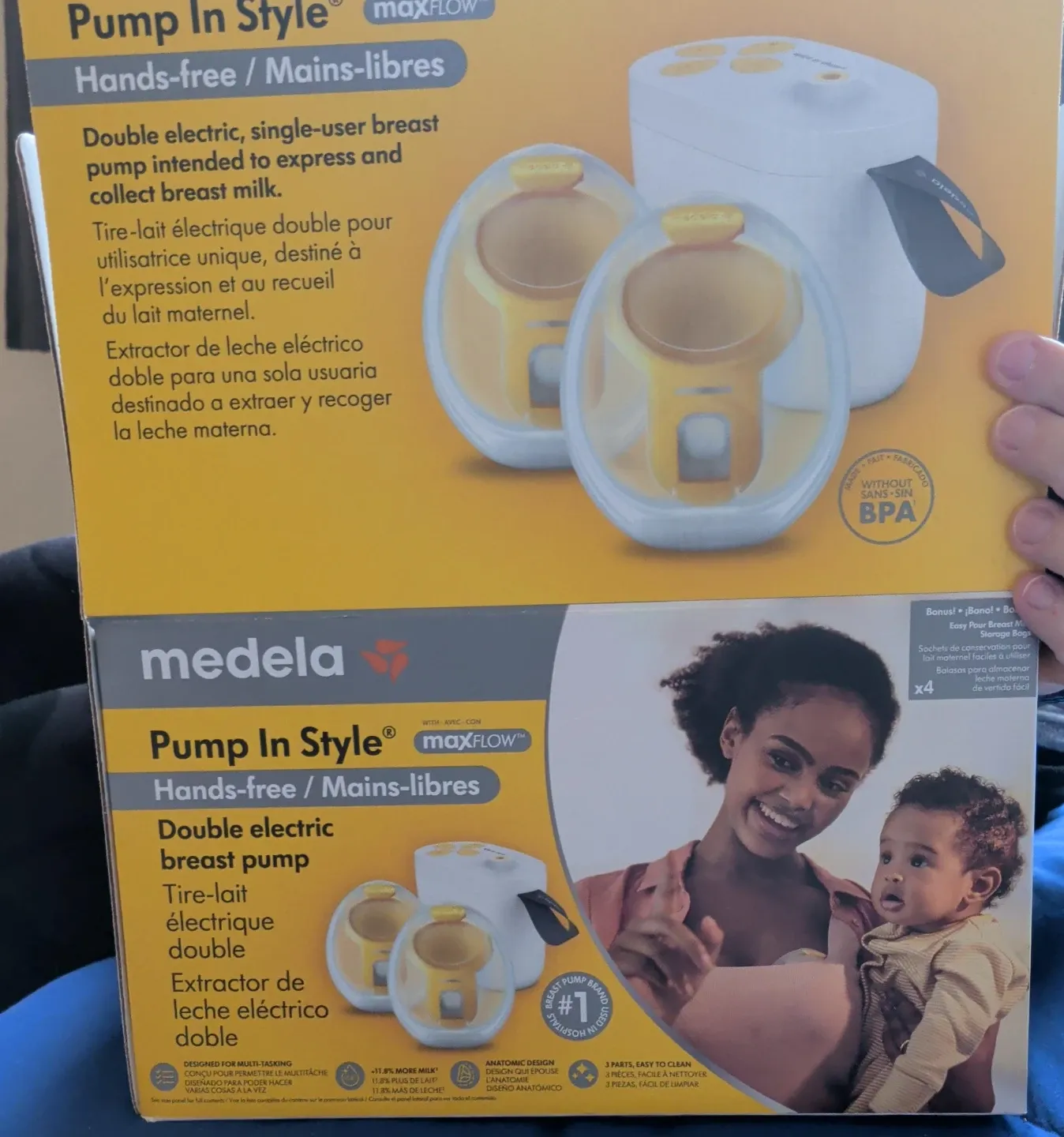 This is a double electric, single-user breast pump designed to express and collect breast milk. It's hands-free and made by Medela with the MaxFlow™ technology. Includes bonus easy pour breast milk storage bags.
