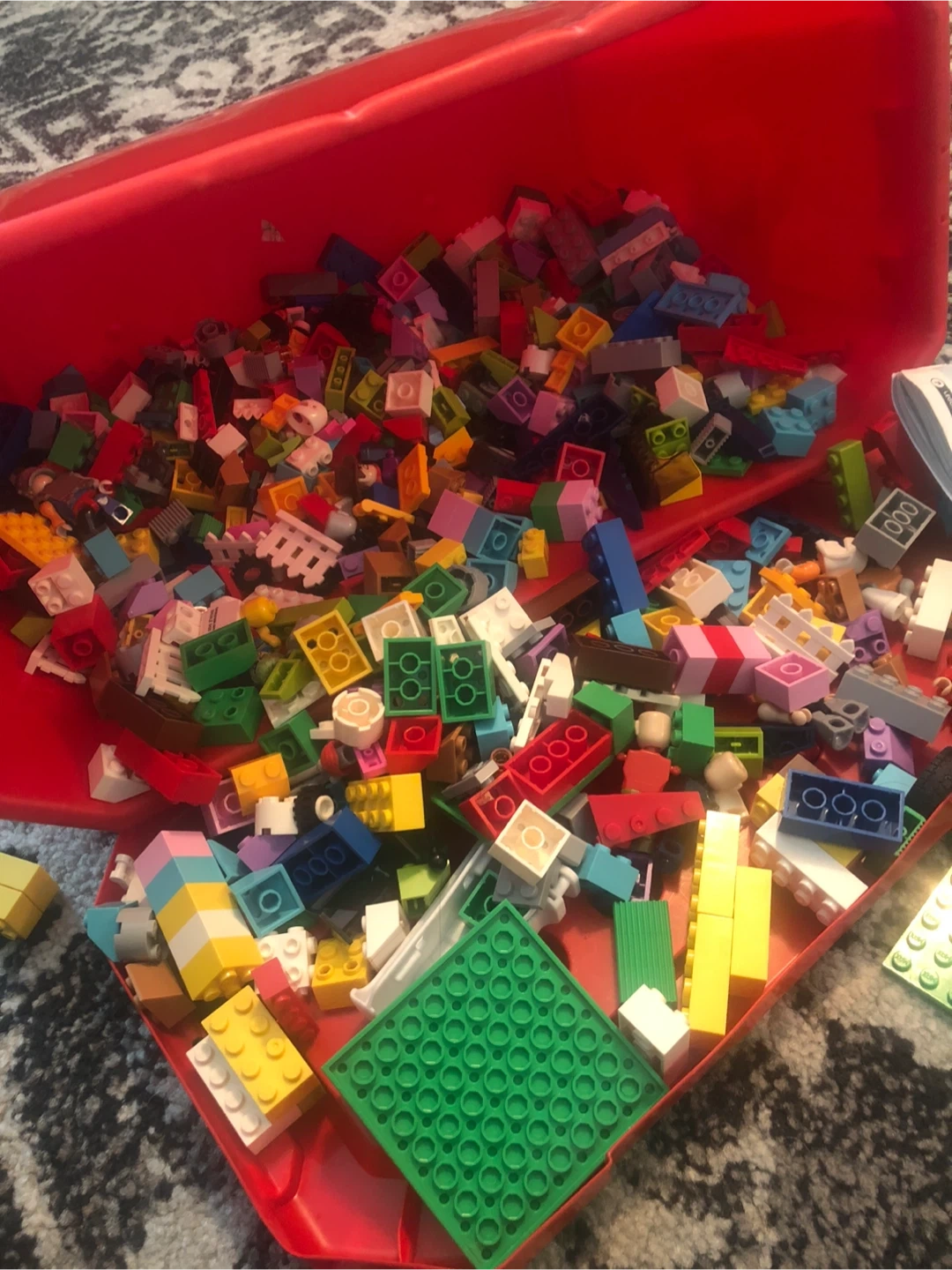 Selling a bin full of mixed LEGO bricks! It comes with a red storage bin to keep everything organized. Perfect for expanding your LEGO collection or starting a new one