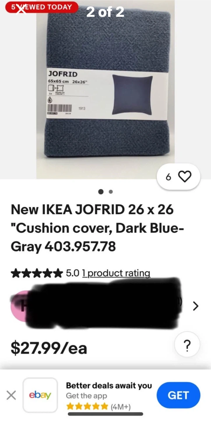 2-Vintage New IKEA JOFRID 26 x 26 "Cushion cover, Dark Blue-Gray for living room bedroom patio