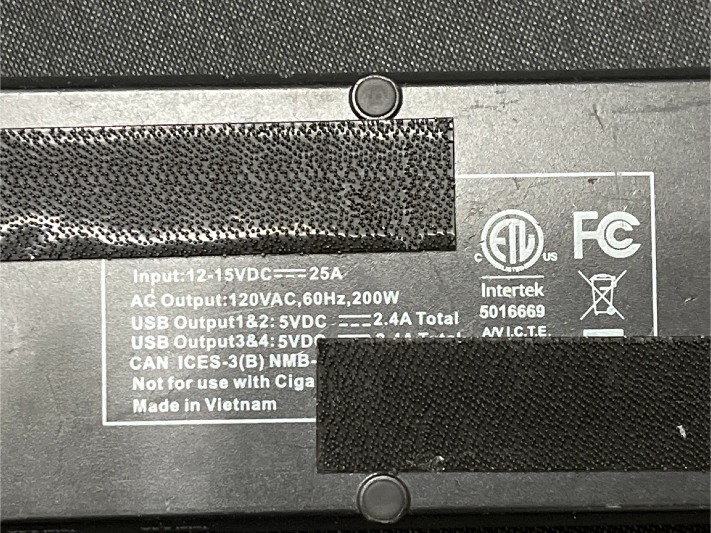 This Scosche power inverter converts 12-15VDC to 120VAC, 200W. It has three AC outlets and two USB outputs providing 5VDC at 2.4A total. It's great for powering electronics on the go!