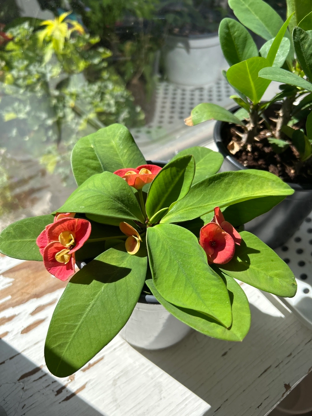 1 potted Crown of Thorns plant. It supposed to be Easy care.