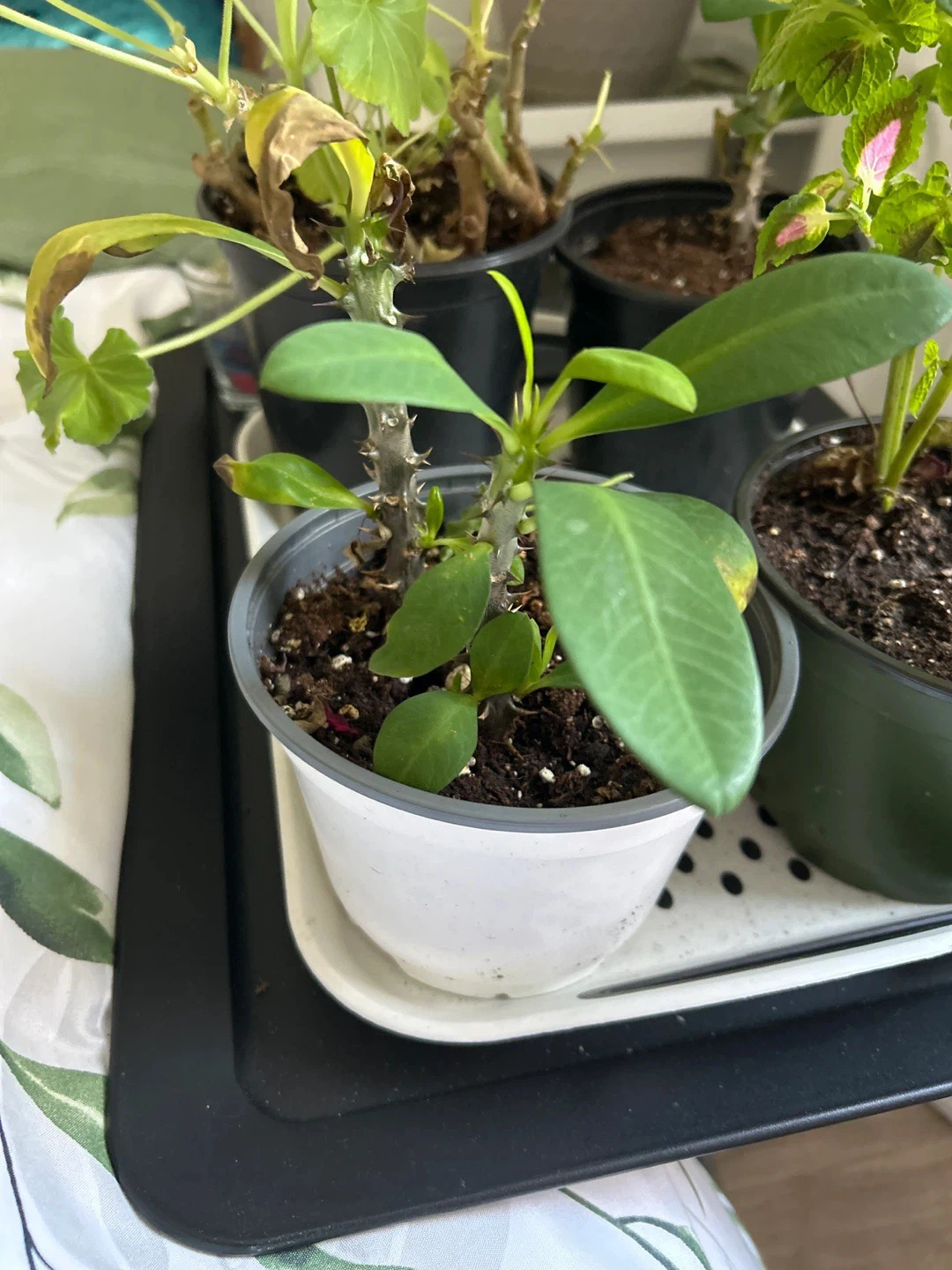 1 potted Crown of Thorns plant. It supposed to be Easy care.