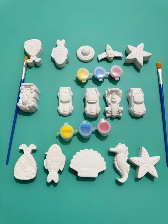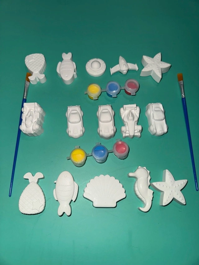 Unleash your inner artist with this delightful set of DIY painting plaster figures! This set includes a variety of unpainted plaster figurines along with paints and brushes, ready for you to customize and bring to life.Embrace your creativity and transform these blank canvases into vibrant works of art. If the ad is still up, yes, it is still available! Assorted 5 fridge magnets, 3 colors of paint, and 1 brush included for $5. Cash accepted