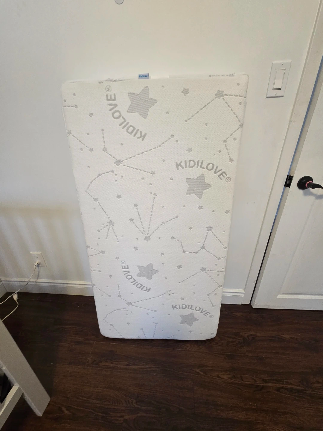 SELLING grey crib and KIDILOVE crib mattress. Crib is currently on lowest setting but can be adjusted.