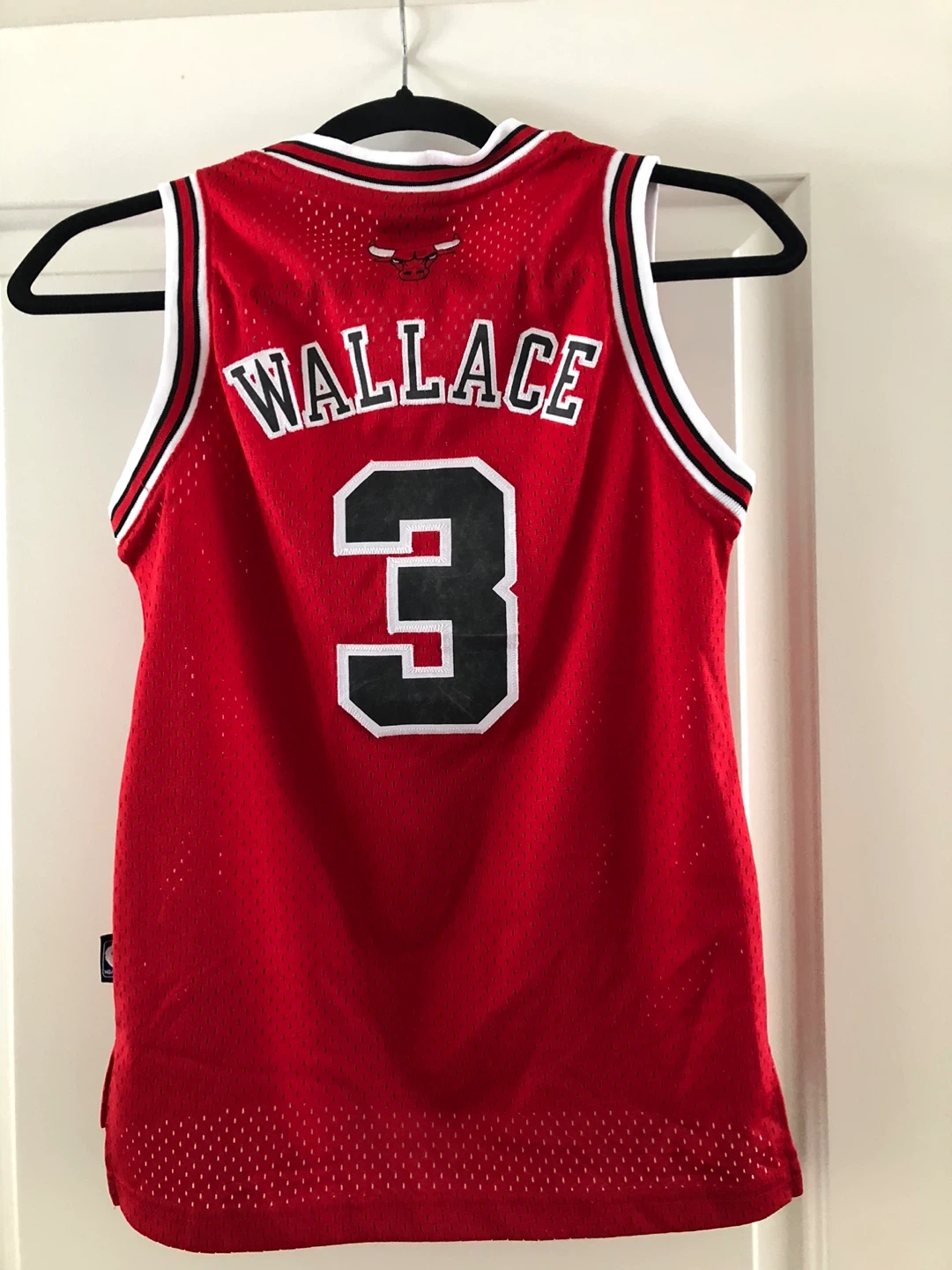 Rare red Adidas Chicago Bulls jersey with Wallace #3. It's a youth small size. Shell is 100% polyester. Condition like new. East Kildonan.