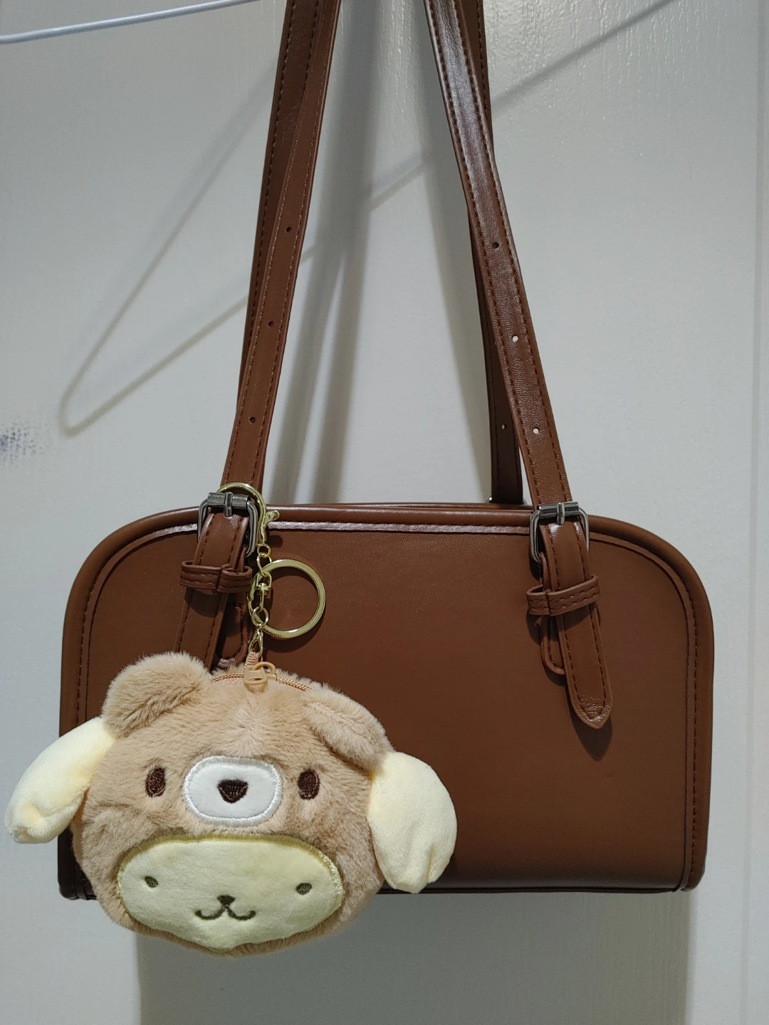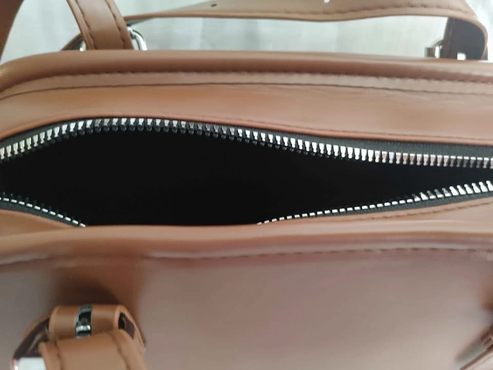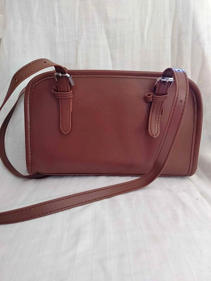Brown shoulder bag made from faux leather.
