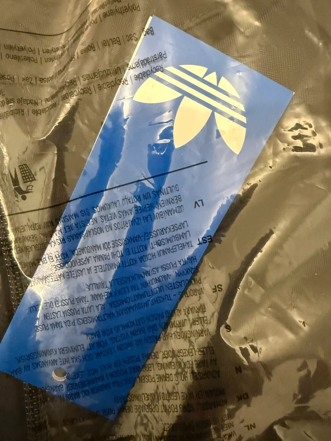 Classic Adidas Firebird track jacket in dark grey with red and yellow stripes. It's brand new, still in its original packaging with tags attached. Great for casual wear or athletic activities! World Cup exclusive!