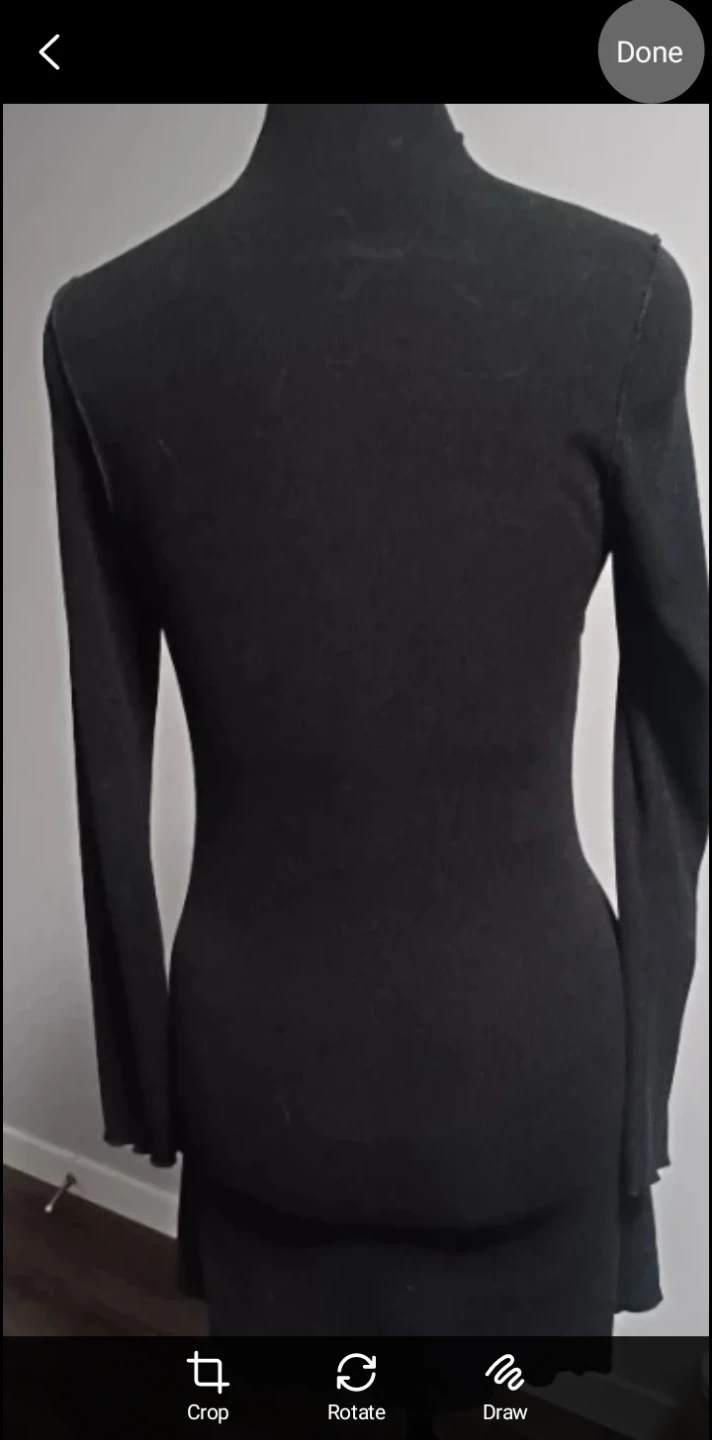 This black top features a ribbed texture and a mock neck design. It has long sleeves with a flattering fitted silhouette. It's made from a comfortable stretch fabric.