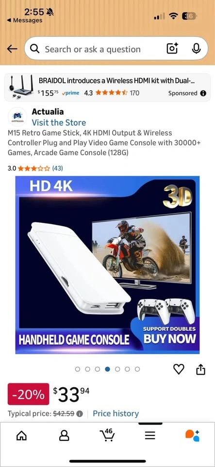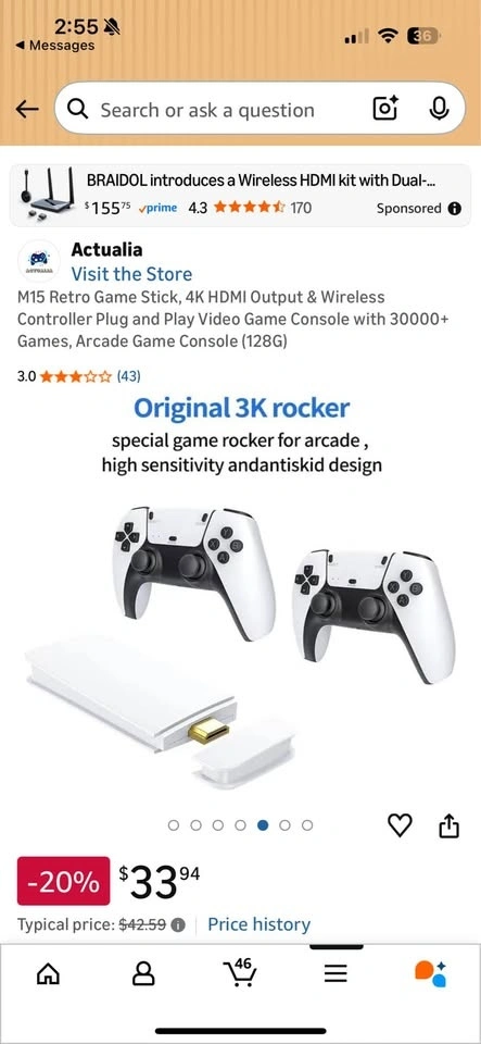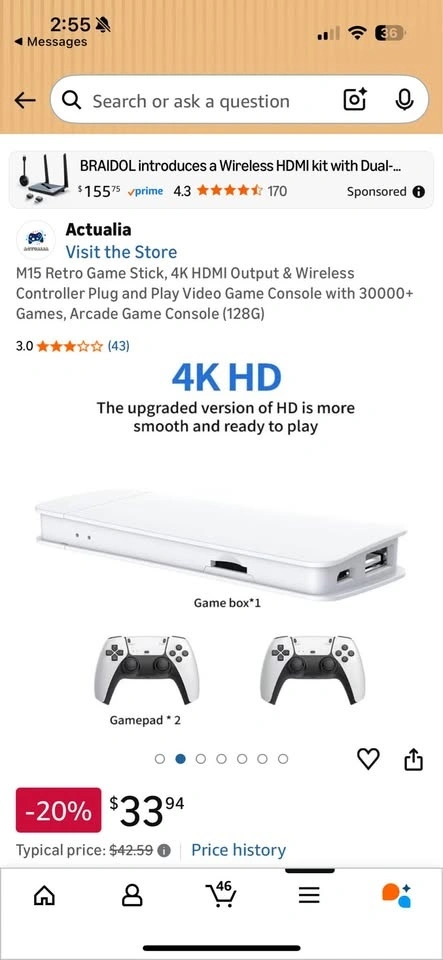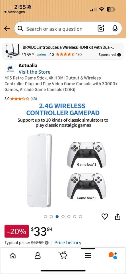 This is a brand new, sealed 2.4 wireless gaming system. It features an Aigame CPU, 256MB DDRIII memory, and a dual-core Cortex-A7 processor up to 1.0GHz. Connects via HDMI and supports 1080P/720P output. Supports multiple languages including English, Spanish, Portuguese, Korean, and Arabic. Package includes: Game Console, HDMI Cord, USB Charging Cable, 2 Wireless Gamepads, and Instruction Manual. Let me know if you're interested!